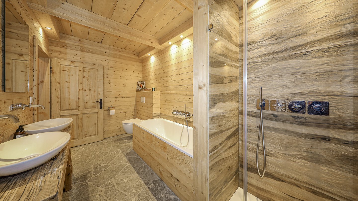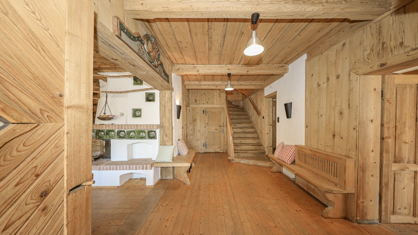 Im gesamten Haus sind sehr viele historische Altholzwände und Wandvertäfelungen vorhanden. Die Böden sind ebenfalls in Holz und in den Bädern in Stein ausgeführt.