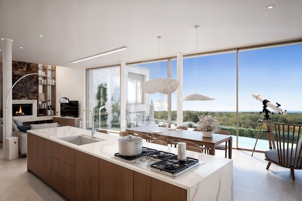 Fußbodenheizung über Wärmepumpe, Klimaanlagen in allen Räumen, Kamin sowie moderne Sicherheitstechnik sorgen für ganzjährigen Wohnkomfort. Der private Pool, die Außenküche und großzügige Terrassen verbinden Innen- und Außenleben auf elegante Weise.