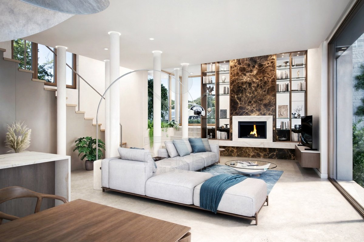 Auf 1.100 m² Grundstücksfläche entsteht eine moderne Villa mit 380 m² Wohnfläche auf drei Ebenen. Der Außenbereich zeigt sich gepflegt und einladend. Garten, Infinity-Pool mit Sonnenterrasse und eine Außenküche schaffen Raum für das Leben im Freien. Gesellige Abende eingeschlossen.