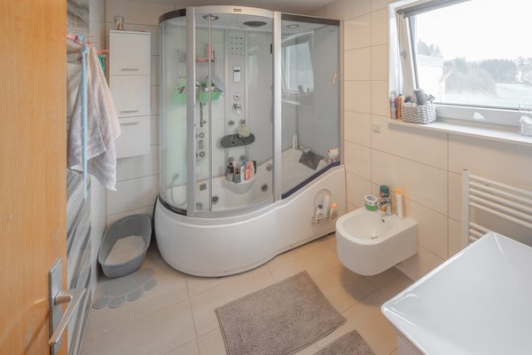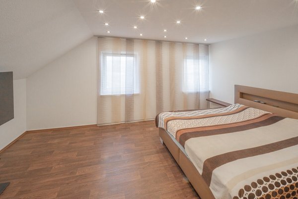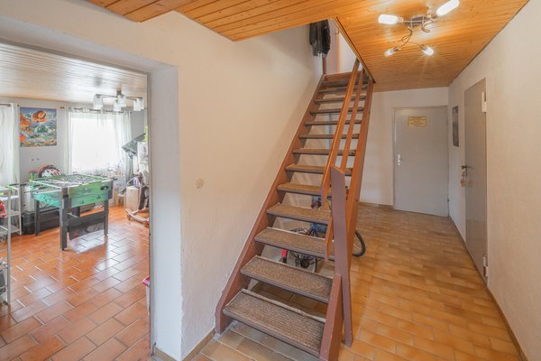 Aufteilung: Im Erdgeschoß befinden sich zwei Schlafzimmer, Wohnzimmer, der breit geführte und sonnige Balkon, die Küche mit Essdiele, welche an eine verglaste Plancha anschließt, die den Weg auf die sonnige Terrasse öffnet. Im Erdgeschoß finden Sie darüberhinaus das Tageslichtbad mit Badewanne, separates WC und einen an die Küche angeschlossenen Vorratsraum. Weitere zwei Schlafzimmer mit Ankleide und eigelassener Deckenbeleuchtung finde Sie im Dachgeschoß. Das enorme Untergeschoß bietet einen Hauswirtschaftsraum, zwei Kellerräume und einen Hobbyraum.