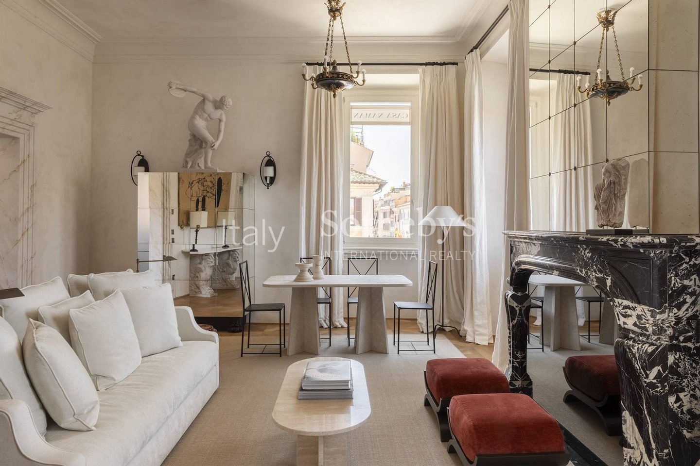 In privilegierter Lage innerhalb eines aufwendig restaurierten historischen Palazzo an der Piazza di Spagna entfaltet sich dieses seltene Wohnangebot als drei individuell gestaltete Apartments, die nach höchsten Maßstäben in Design und Komfort