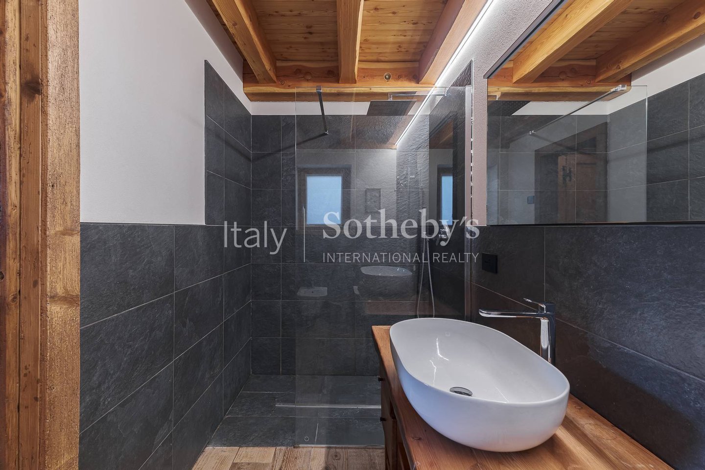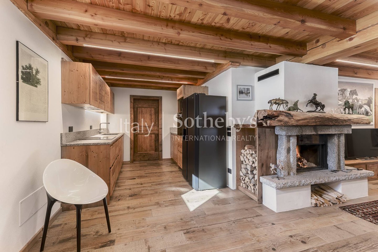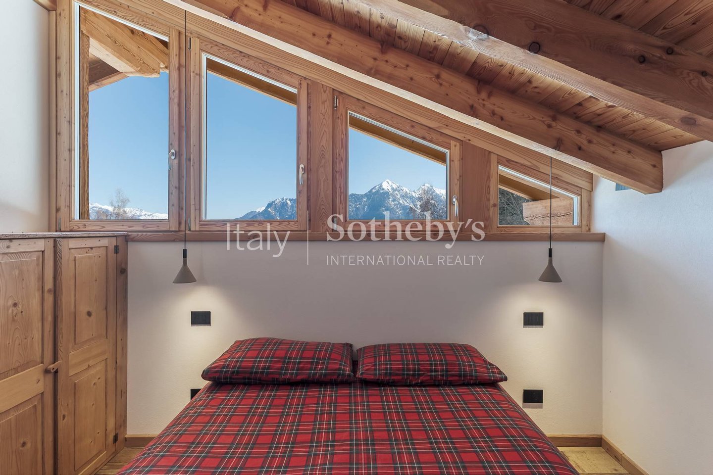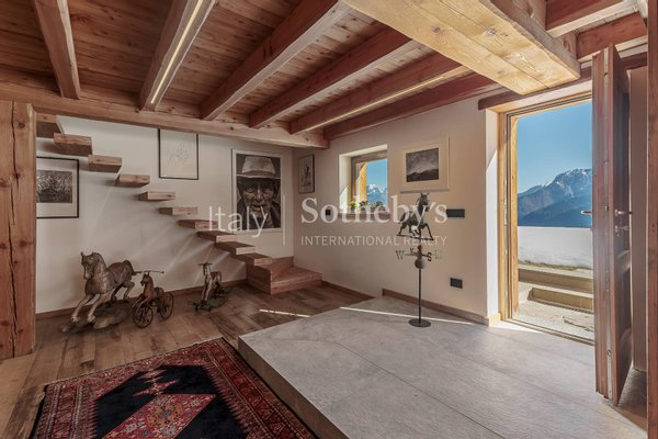 Dieses Chalet mit Panoramablick auf die Brenta-Dolomiten bietet ca. 215 m² Wohnfläche auf zwei Ebenen.