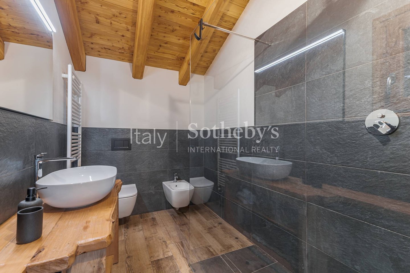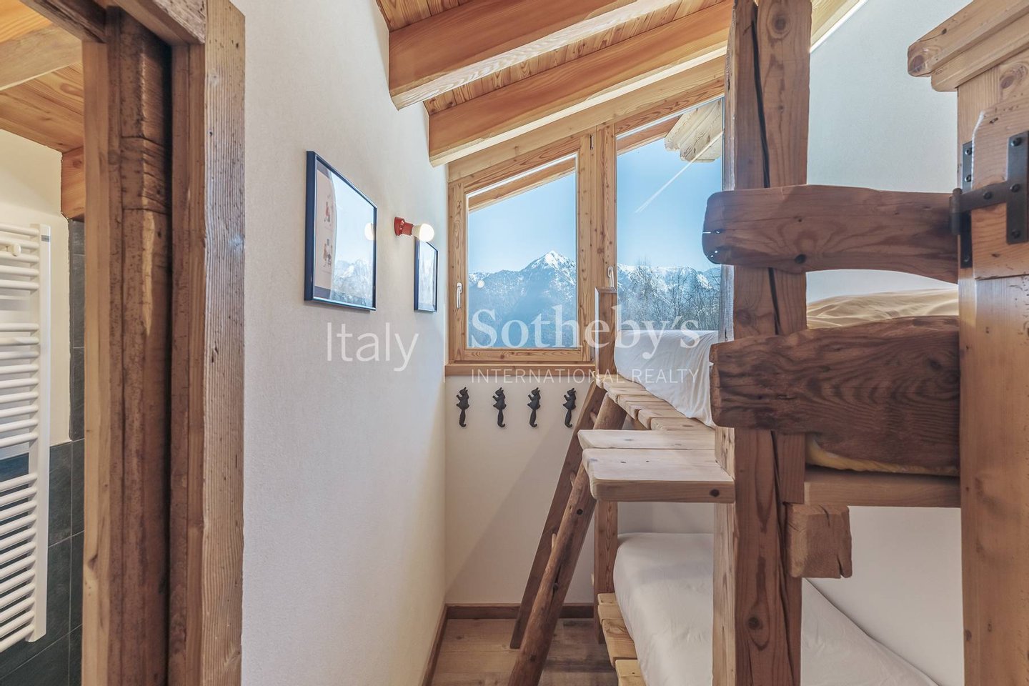 Dieses Chalet mit Panoramablick auf die Brenta-Dolomiten bietet ca. 215 m² Wohnfläche auf zwei Ebenen.