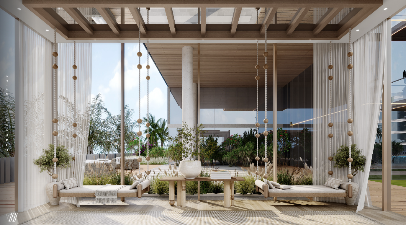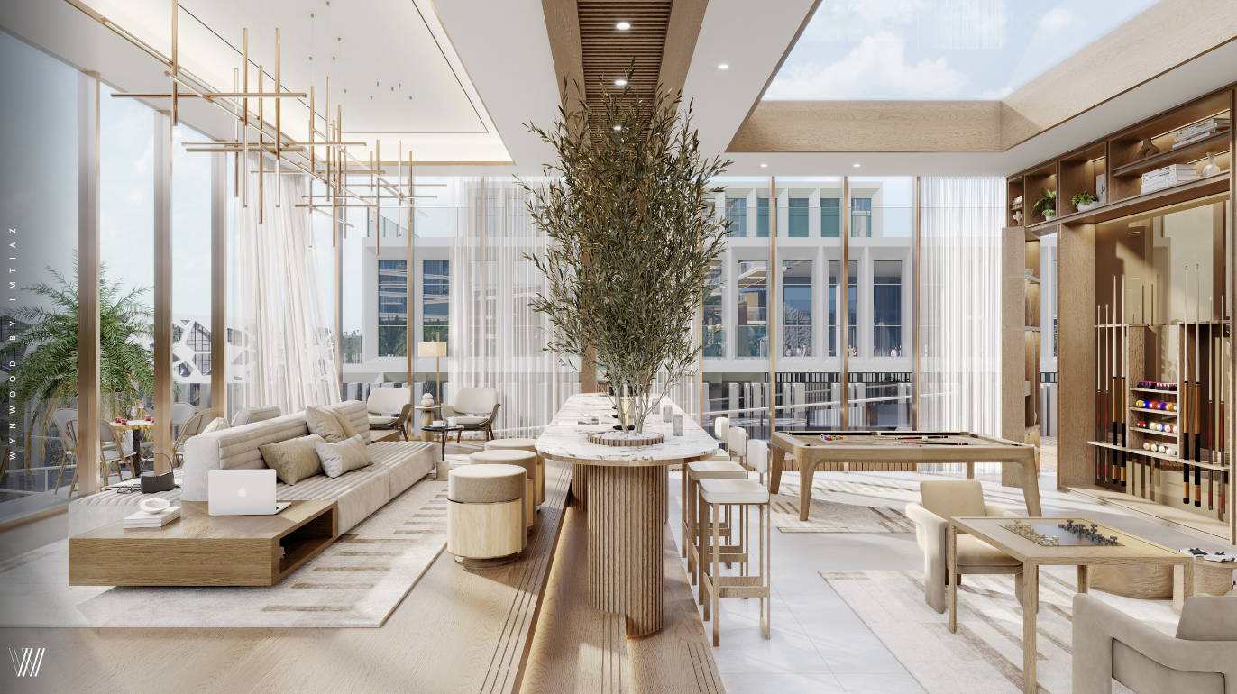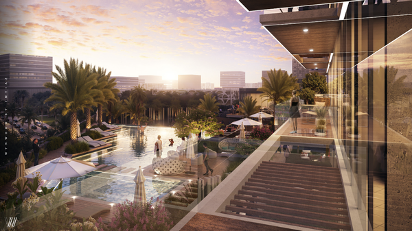 Erkunden Sie den grünen Innenhof, die begrünten Gehwege und die Fußgängerwege, die das ikonische Clubhaus und die Treppe umgeben. Gönnen Sie sich ein unvergleichliches Essenserlebnis in den schwebenden Speisesälen oder entspannen Sie sich auf dem mehrstöckigen Podium. Parken Sie Ihr Fahrzeug bequem auf dem VIP-Parkplatz, der über Ladestationen für Elektrofahrzeuge verfügt.