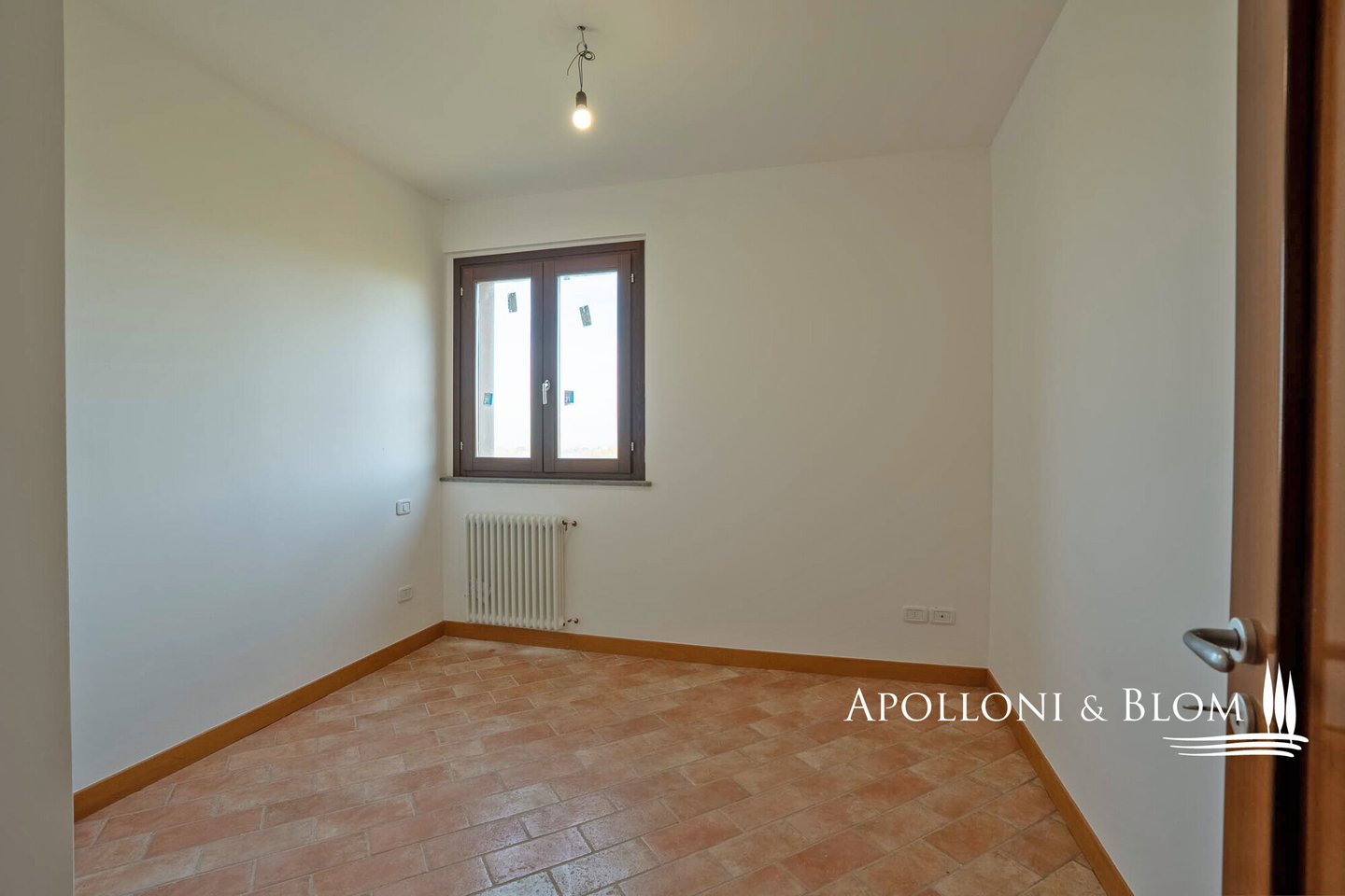 Neue Wohnung im ersten Stock mit zwei Panoramaloggien, bezugsfertig, Aufzug und Garagenmöglichkeit, in Città della Pieve zu verkaufen. In einem reservierten Bereich mit Blick auf die umbrische Landschaft, aber mit Geschäften, Restaurants und