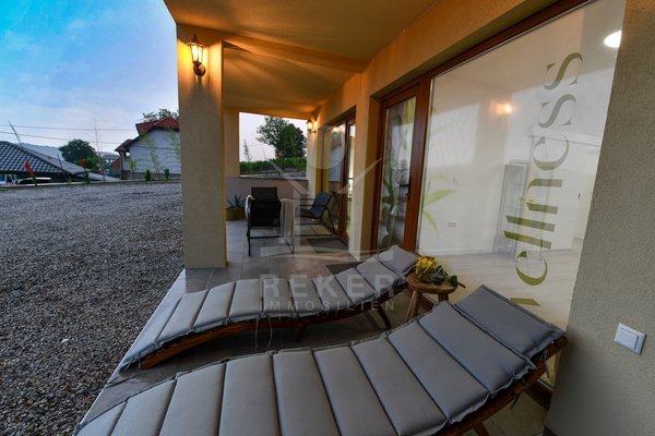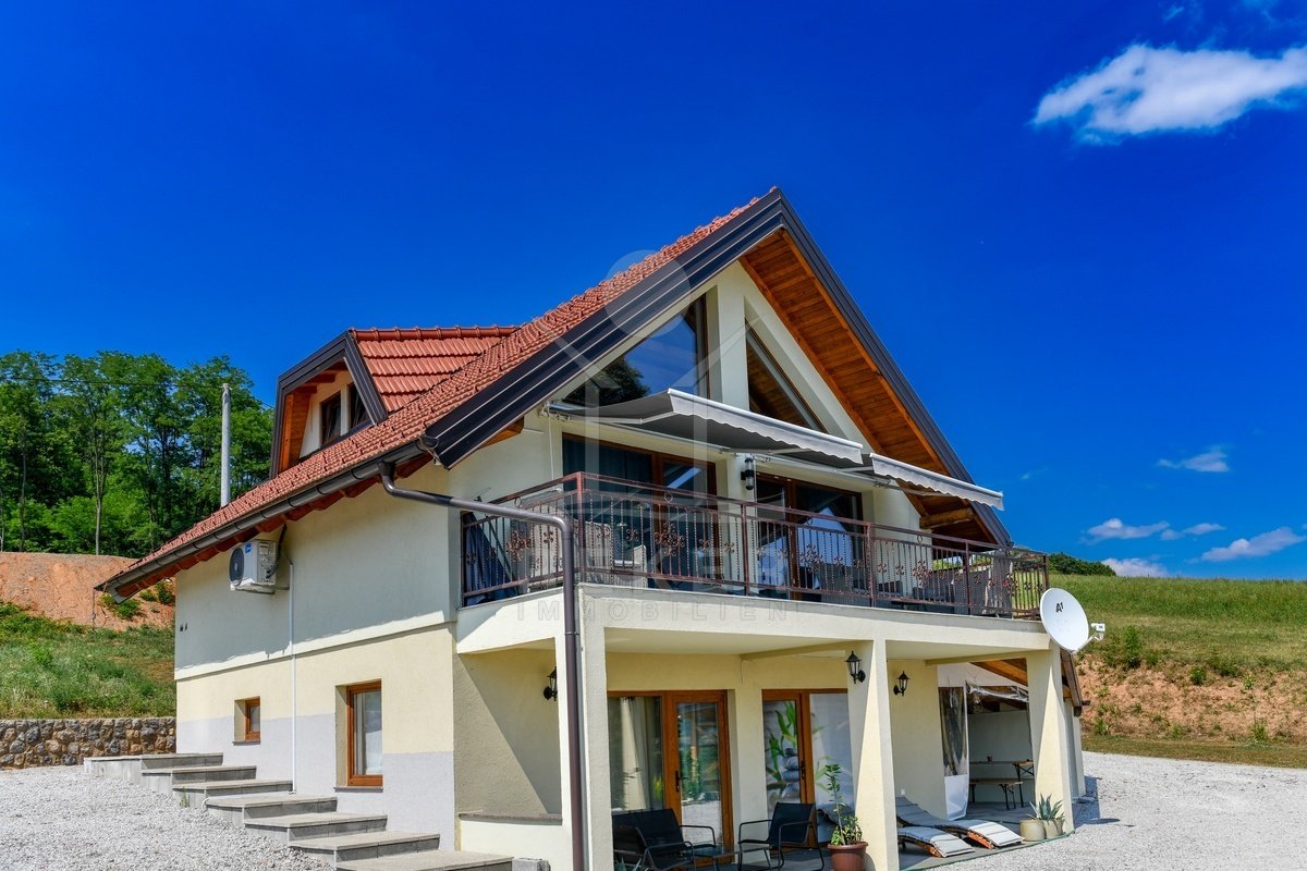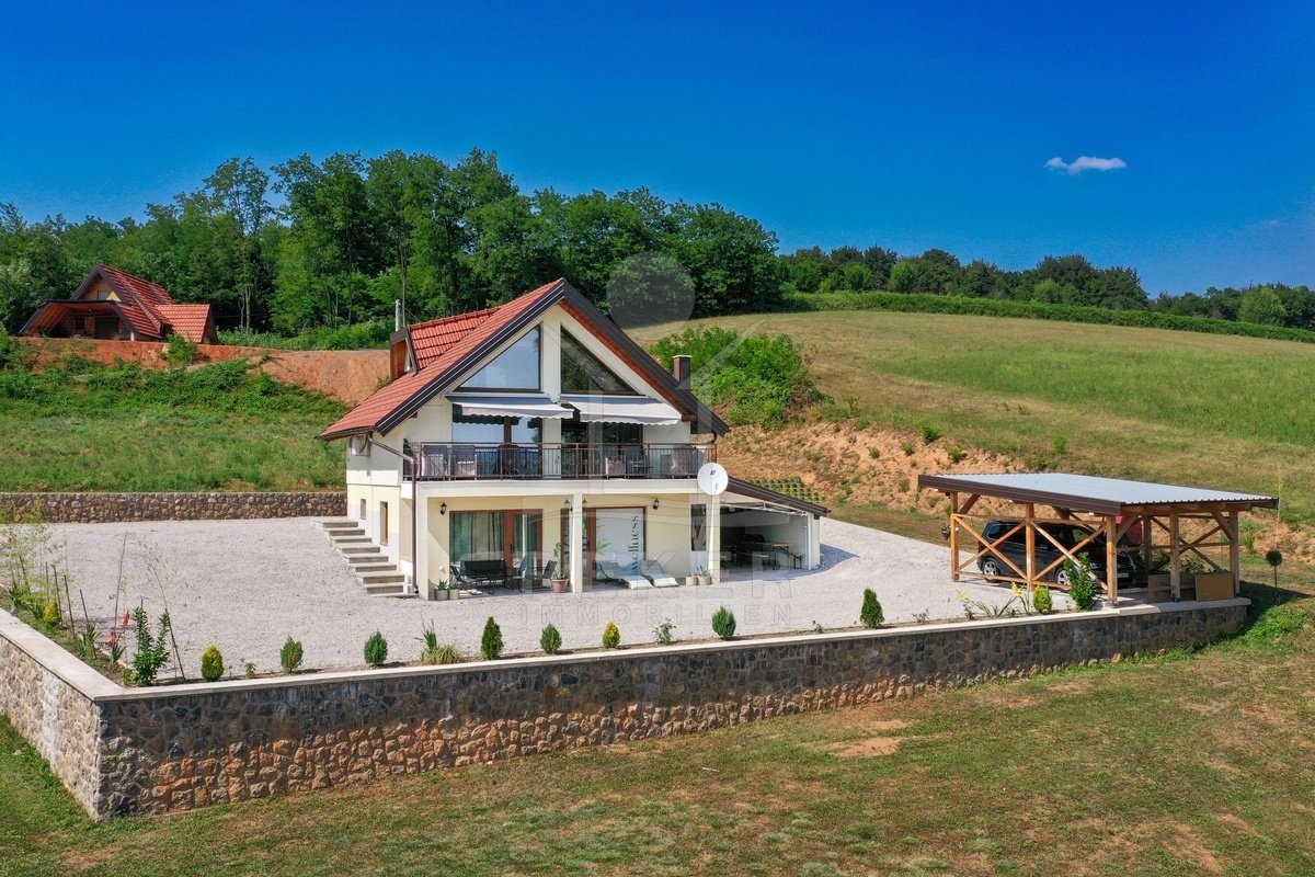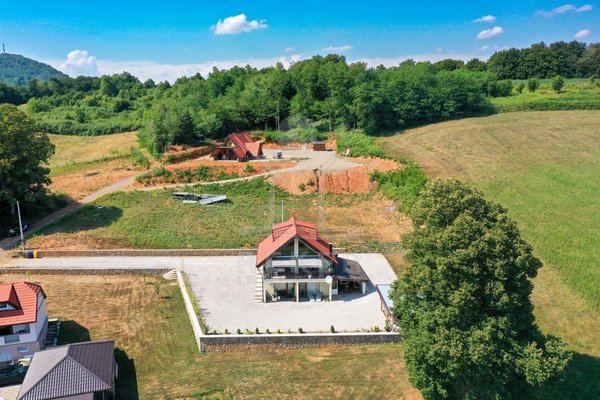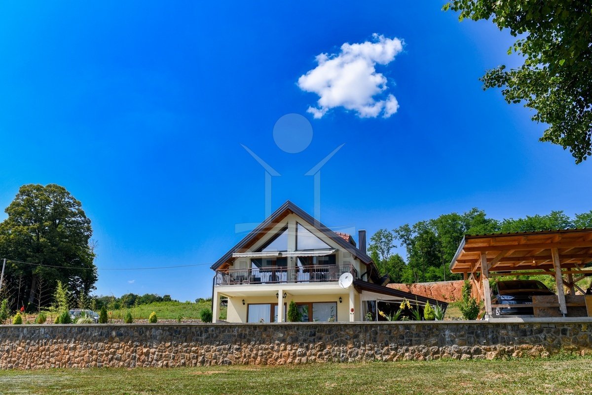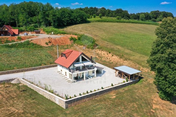 Dieses moderne Einfamilien- und Ferienhaus befindet sich in der Gemeinde Barilović, umgeben von viel Grün, nur rund 650 m vom Fluss Korana entfernt und etwa 15 km von Karlovac. Ruhe und Natur treffen hier auf eine praktische Erreichbarkeit des