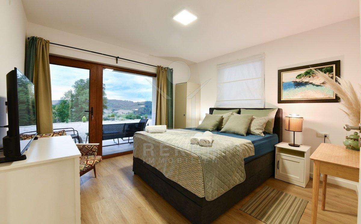 Dieses moderne Einfamilien- und Ferienhaus befindet sich in der Gemeinde Barilović, umgeben von viel Grün, nur rund 650 m vom Fluss Korana entfernt und etwa 15 km von Karlovac. Ruhe und Natur treffen hier auf eine praktische Erreichbarkeit des täglichen Bedarfs. Der asphaltierte Zugang und der überdachte Parkplatz erleichtern den Alltag und sorgen auch während der Ferien für ein entspanntes Ankommen.