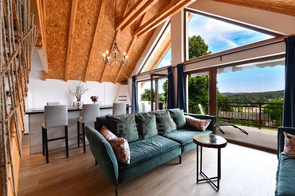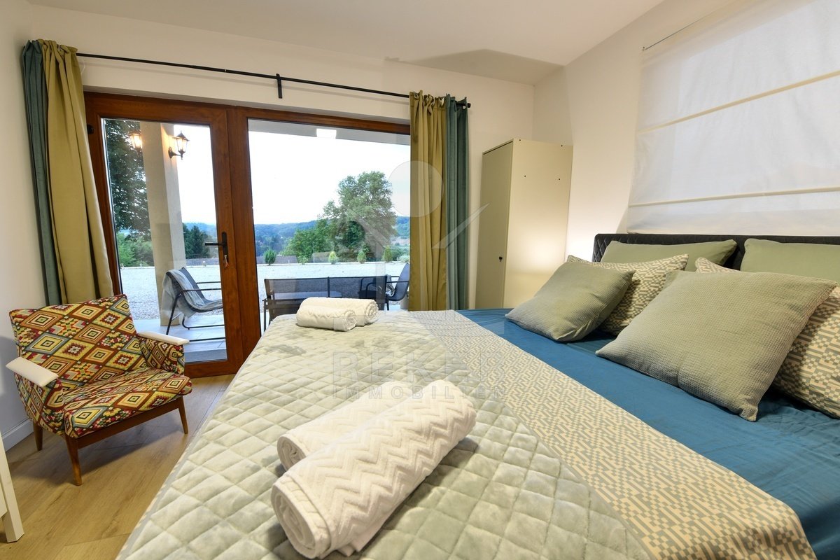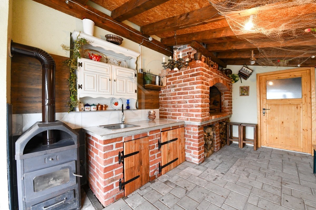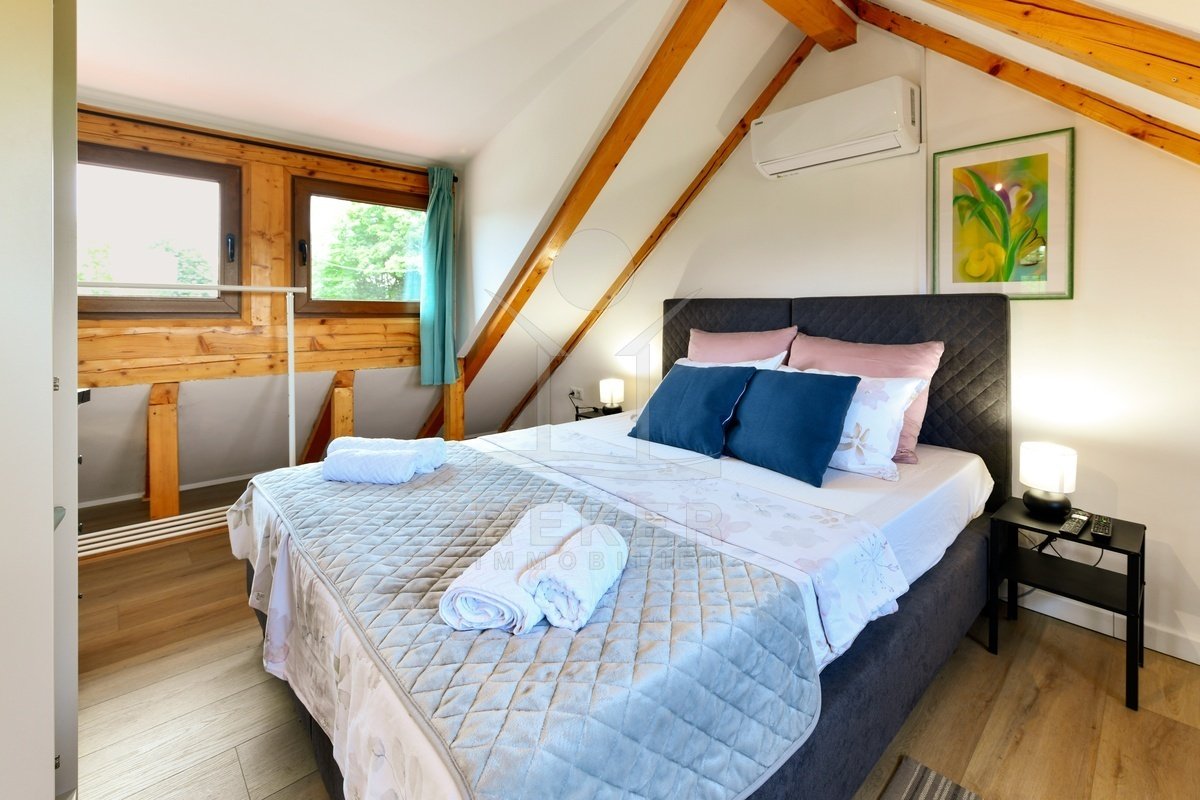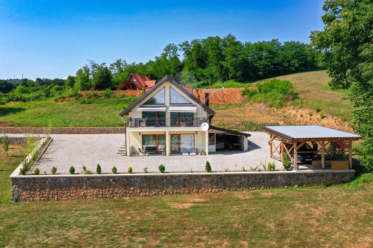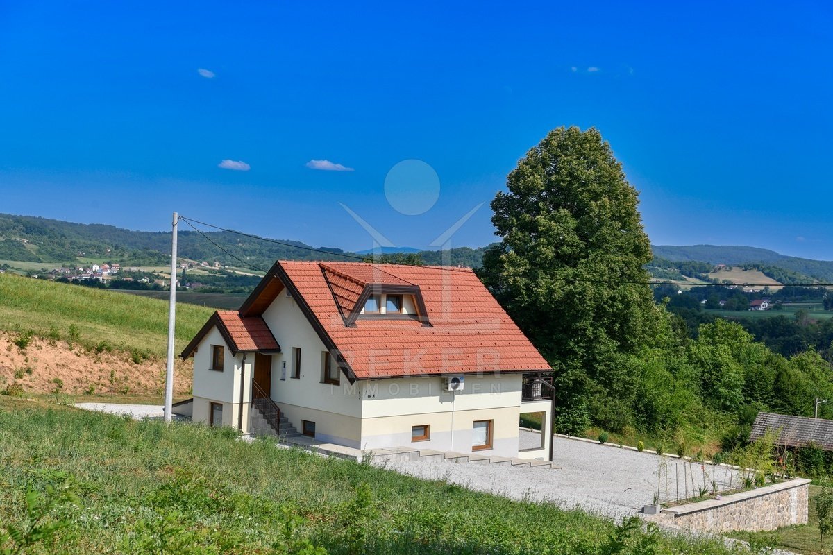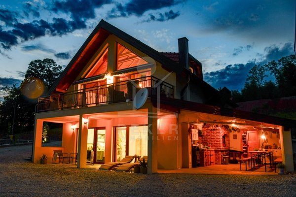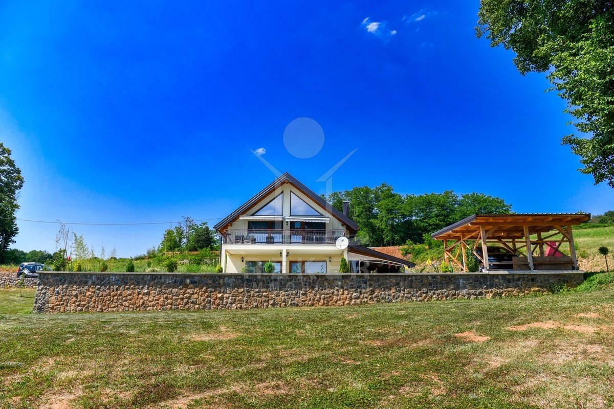 Dieses moderne Einfamilien- und Ferienhaus befindet sich in der Gemeinde Barilović, umgeben von viel Grün, nur rund 650 m vom Fluss Korana entfernt und etwa 15 km von Karlovac. Ruhe und Natur treffen hier auf eine praktische Erreichbarkeit des