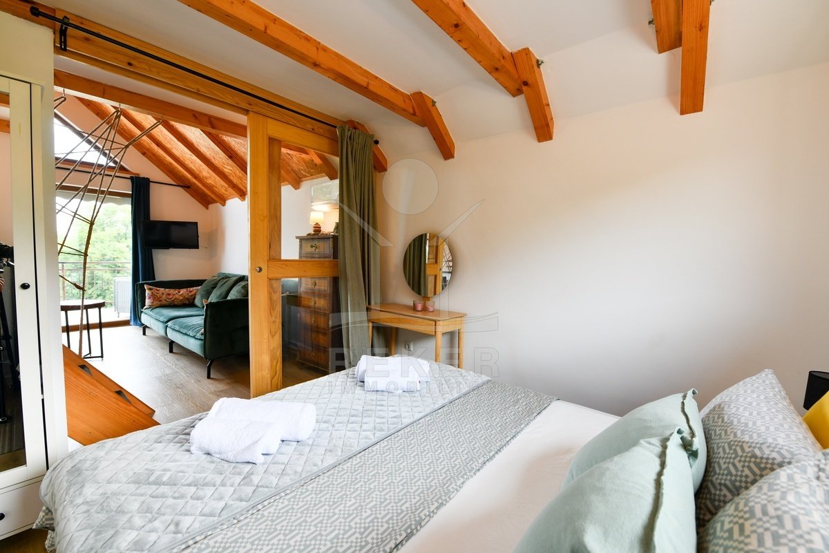 Dieses moderne Einfamilien- und Ferienhaus befindet sich in der Gemeinde Barilović, umgeben von viel Grün, nur rund 650 m vom Fluss Korana entfernt und etwa 15 km von Karlovac. Ruhe und Natur treffen hier auf eine praktische Erreichbarkeit des täglichen Bedarfs. Der asphaltierte Zugang und der überdachte Parkplatz erleichtern den Alltag und sorgen auch während der Ferien für ein entspanntes Ankommen.