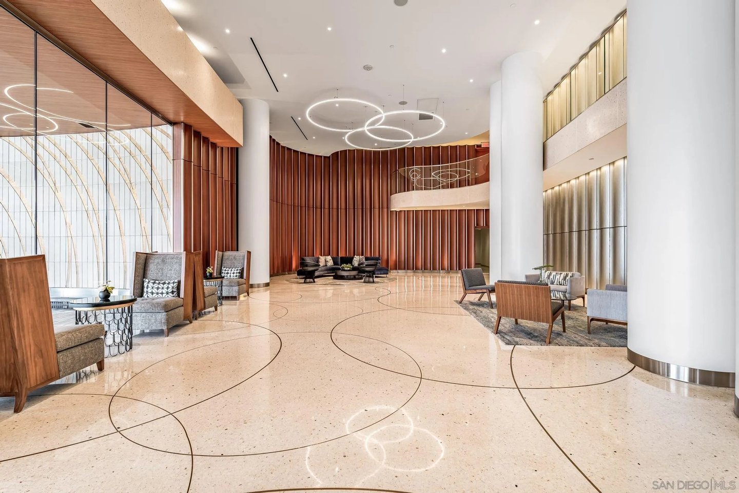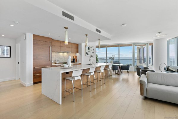 Tauchen Sie ein in ein erhöhtes Küstenleben im Pacific Gate, San Diegos begehrtem Wohnturm. Im 10. Stock gelegen, bietet diese offene und geräumige Eckwohnung mit 2 Schlafzimmern + Arbeitszimmer und 2,5 Bädern Panoramablicke auf die Bucht und die Stadt durch weitläufige Glaswände. Sorgfältig gestaltet, bietet dieses großzügige Layout einen offenen Wohnbereich im natürlichen Licht, eine elegante Kochküche mit hochwertigen Wolf-, Sub-Zero- und Miele-Geräten sowie wunderschön kuratierte Oberflächen im gesamten Raum. Die geräumige Hauptsuite verfügt über ein spa-inspiriertes Badezimmer und einen großzügigen begehbaren Kleiderschrank von California Closets, während das zweite Schlafzimmer im Suite-Raum den Gästen Privatsphäre und einen unglaublichen Blick auf die Bucht bietet. Das Arbeitszimmer/Büro bietet Flexibilität als drittes Bett oder als privates Homeoffice. Die große, private überdachte Terrasse bietet einen einladenden Raum, um zu entspannen und die lebendigen Sonnenuntergänge San Diegos zu genießen. Zu den Resort-Annehmlichkeiten gehören eine 45 Fuß lange Yachtshare, eine luxuriöse Autoflotte, ein Kochconcierge, eine Gästesuite, eine Poolterrasse mit Cabanas, eine Lounge der Bewohner mit Cateringküche, ein hochmodernes Fitnesscenter mit Sauna und Dampfbad, ein Vorführraum, ein Hundelauf und ein vor Ort geführtes Restaurant mit Promi-Kochen. Genießen Sie den luxuriösen Küstenlebensstil im einzigen Super Prime Wohnturm San Diegos. Pacific Gate befindet sich in Millionaire's Row und ist nur wenige Schritte vom Hafen, Seaport Village, dem Rady Shell, Restaurants und Luxusboutiquen entfernt.