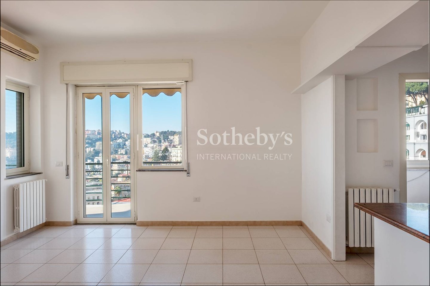 This spacious and bright penthouse is located on the top floor of a building set within a beautiful private park, featuring an elevator and concierge service. It enjoys breathtaking views stretching from Mount Vesuvius to Capo Posillipo, with a privileged outlook over the island of Capri. The property, which benefits from a double entrance, extends over one large single level with an efficient and well-organized layout. The apartment comprises a large and bright double living room with a beautiful fireplace, opening onto a livable terrace, ideal for social gatherings. The living area also includes a spacious eat-in kitchen with office space, overlooking a lovely panoramic terrace. The sleeping area features three bedrooms, an additional room that can be used as a study or walk-in closet, and two bathrooms. The property is completed by an uncovered parking space.