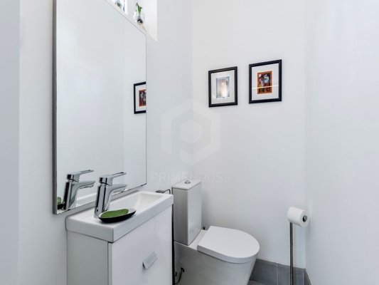 Auf dieser Etage finden wir außerdem einen Flur mit einem eleganten Wandgemälde und ein voll ausgestattetes Badezimmer mit einer Badewanne zur Unterstützung der anderen Schlafzimmer. In einem der Schlafzimmer gibt es eine Tür, die zu einer Treppe führt, die zu einem prächtigen zusätzlichen Raum führt, mit einer Holzbalkendecke, einem Velux-Fenster mit ungehindertem Blick auf Lissabon und Lagerräumen.