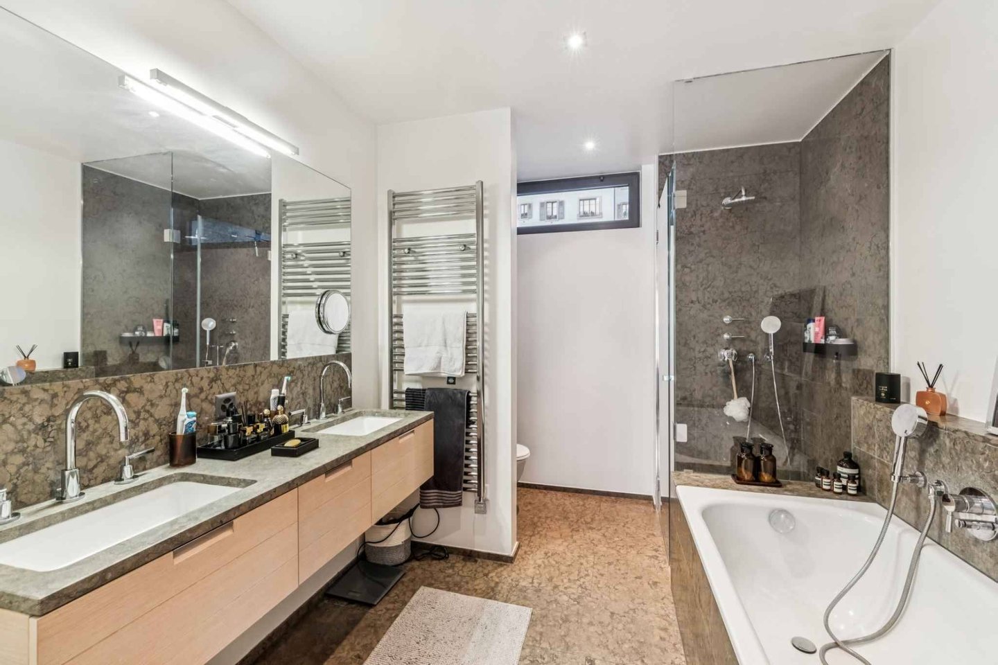 Die Wohnung, in perfektem Zustand, bietet eine PPE-Fläche von 141 m², ergänzt durch eine Loggia von 21 m², und ist wie folgt verteilt: