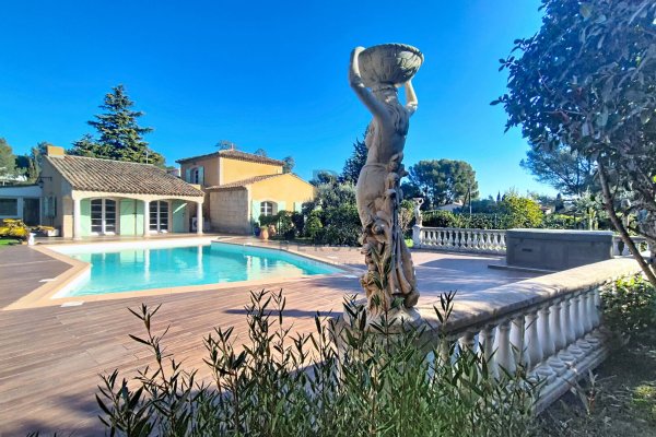 Outside, the garden hosts a perfectly integrated swimming pool, inviting you to take full advantage of the sunny days thanks to its favorable exposure.