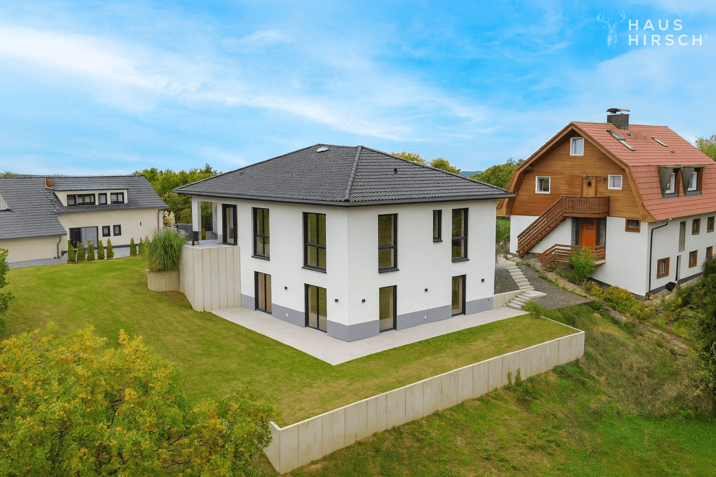 Dieses exklusive Architektenhaus, 2021 in massiver Bauweise errichtet, verkörpert modernes Wohnen auf höchstem Niveau. Mit klarer, zeitloser Architektur fügt es sich elegant in die Hanglage ein und eröffnet auf ca. 220 m² Wohnfläche ein