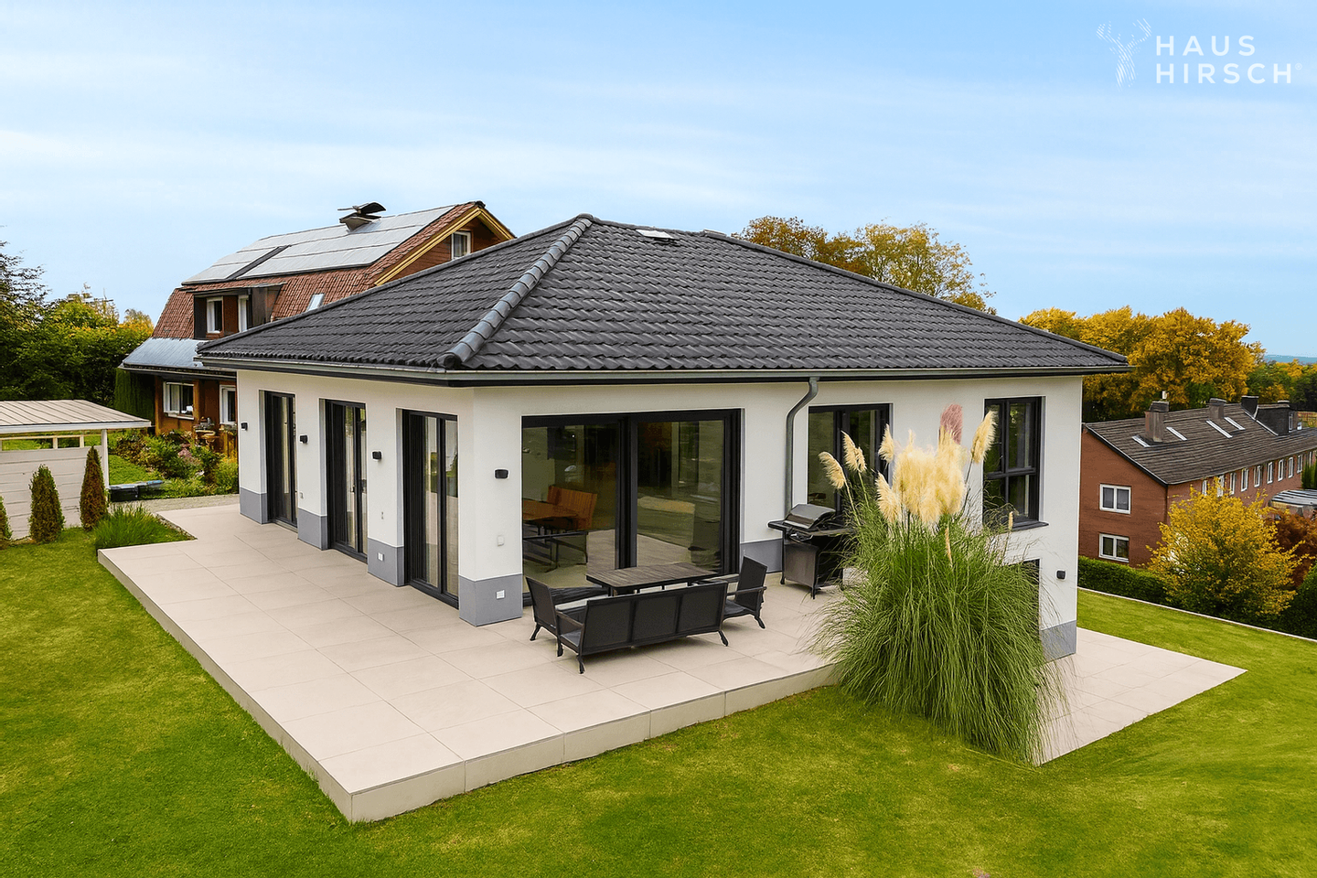 Nicht zuletzt überzeugt das Haus durch seine Energieeffizienz: Eine moderne Luft-Wasser-Wärmepumpe, kombiniert mit Lüftungsanlage und zeitgemäßer Dämmung, sorgt für niedrige Betriebskosten und nachhaltiges Wohnen.