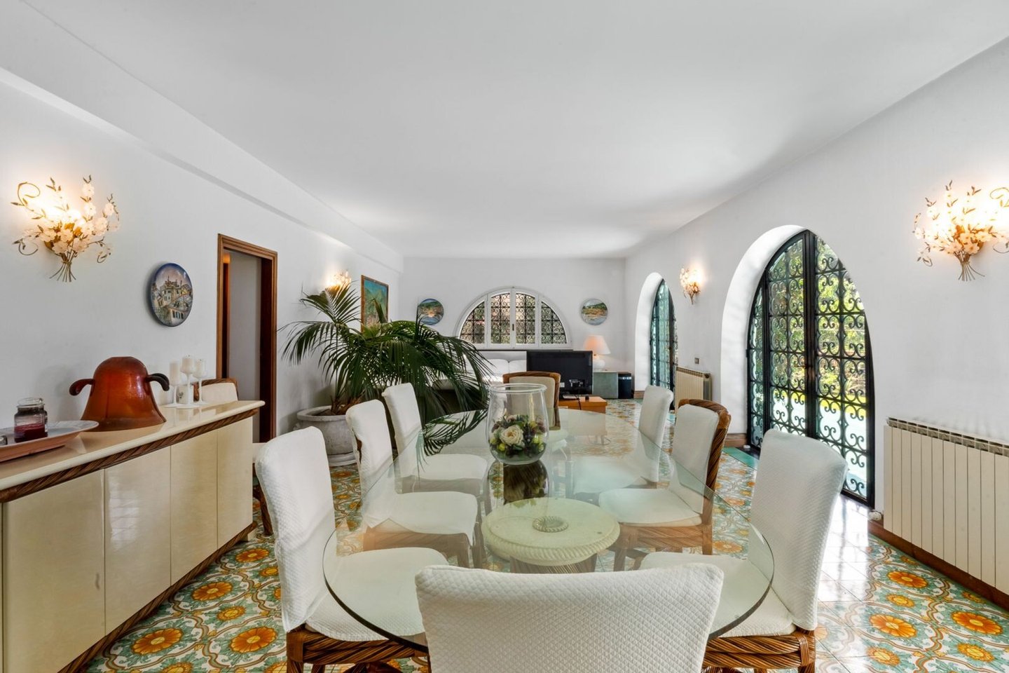 Dreistöckige Villa mit Meerblick, umgeben von Terrassen und einem üppigen Garten, mit acht Zimmern und privatem Zugang zum Meer in Recco zu verkaufen. Im Herzen des Golfo Paradiso, einem der prestigeträchtigsten Orte der ligurischen Riviera, bieten wir eine spektakuläre, charaktervolle Villa von 434 Quadratmetern mit privater Auffahrt und exklusivem Zugang zum Meer an. Die Villa zeichnet sich durch ihre architektonische Eleganz und ihre unvergleichliche Panoramalage aus, die einen atemberaubenden Blick auf das Meer und das Vorgebirge von Portofino bietet. Ein elegantes Holztor ist der Eingang zum Grundstück und führt zu einem Parkplatz, der bequem Platz für 4-5 Autos bietet. Der Garten, der die Villa umgibt, ist eine Oase der Ruhe, gesäumt von maritimen Kiefern und Rasenflächen, die von großen Terrassen unterbrochen werden, die ideal für das Leben im Freien sind. Charmanter Charakter, elegante originale Fliesenböden kombiniert mit gewölbten Türen, die sich zum Garten hin öffnen. Die Villa erstreckt sich über drei Etagen und ist sehr flexibel gestaltet, so dass sie entweder als freistehendes Haus mit acht Schlafzimmern oder als drei in sich geschlossene Einheiten mit jeweils eigenem Eingang genutzt werden kann. Das Erdgeschoss öffnet sich zu einem majestätischen Empfangsraum, der mit feinen handgefertigten Majolikafliesen dekoriert ist. Die Küche, ebenfalls mit direktem Zugang zu einem Wohnbereich im Freien, ist harmonisch mit den anderen Räumen verbunden. Auf dieser Ebene befinden sich eine geräumige Master-Suite mit Zugang zum Garten, ein Hauptschlafzimmer, zwei Bäder und ein unabhängiger Bereich mit Bad und Waschküche, der von Mitarbeitern oder Gästen genutzt werden kann. Eine herrliche Schiefertreppe führt in den ersten Stock, wo jedes Zimmer Meerblick und natürliches Licht genießt. Hier befinden sich ein Wohnzimmer mit Kamin, ein Hauptschlafzimmer mit Vorzimmer, Kamin und eigenem Bad, zwei Doppelschlafzimmer mit eigenem Bad, zwei weitere Schlafzimmer, ein Bad, ein Abstellraum und ein begehbarer Kleiderschrank. Das über eine Außentreppe erreichbare Obergeschoss verfügt über eine Dachterrasse mit herrlichem Blick auf das Meer und die umliegende Vegetation; es umfasst einen Gästebereich, der aus einem Wohnzimmer mit Kamin, einer Kochnische, einem Schlafzimmer und einem Badezimmer besteht. Die Villa ist unter anderem mit Steinkaminen, Fliesenböden und eleganten schmiedeeisernen Bogentüren ausgestattet, die dem Haus eine seltene Eleganz und Einzigartigkeit verleihen. Die Villa verfügt außerdem über zwei praktische Wirtschaftsräume, von denen einer derzeit als Taverne genutzt wird, und ein Nebengebäude in der Nähe des Zugangs zum Meer, das sich ideal für die Lagerung von Sportgeräten eignet. Ein kurzer Privatweg führt zu einem kürzlich renovierten Pier mit einem bequemen Steg für den direkten Zugang zum Meer. Eine exklusive Residenz, umgeben von Grün und mit privatem Zugang zum Meer, alles in einem Kontext von absoluter Privatsphäre und Ruhe, stellt diese Villa eine einzigartige Gelegenheit.