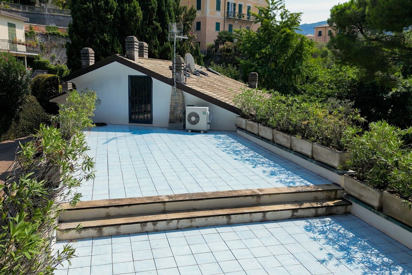 Dreistöckige Villa mit Meerblick, umgeben von Terrassen und einem üppigen Garten, mit acht Zimmern und privatem Zugang zum Meer in Recco zu verkaufen. Im Herzen des Golfo Paradiso, einem der prestigeträchtigsten Orte der ligurischen Riviera, bieten
