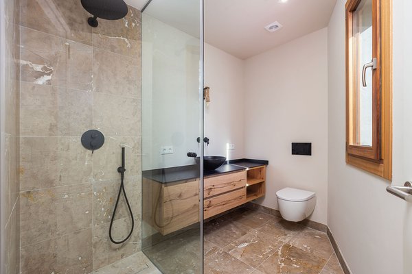 Die Wohnfläche von rund 272 m² bietet ein durchdachtes Raumkonzept mit einem großzügigen Eingangsbereich, insgesamt fünf Schlafzimmern sowie weitläufigen Gemeinschaftsflächen. Vier der Schlafzimmer sind auf zwei separate Flügel verteilt, die durch ein zentrales Esszimmer mit offener Küche, Kochinsel und angrenzendem Wohnbereich miteinander verbunden sind. Große Fensterflächen sorgen für viel Tageslicht und ermöglichen den direkten Zugang zu einer überdachten Terrasse, die ausreichend Platz für einen Essbereich und Lounge-Möbel bietet und gleichzeitig einen eindrucksvollen Fernblick auf das Meer und die umliegende Landschaft eröffnet.