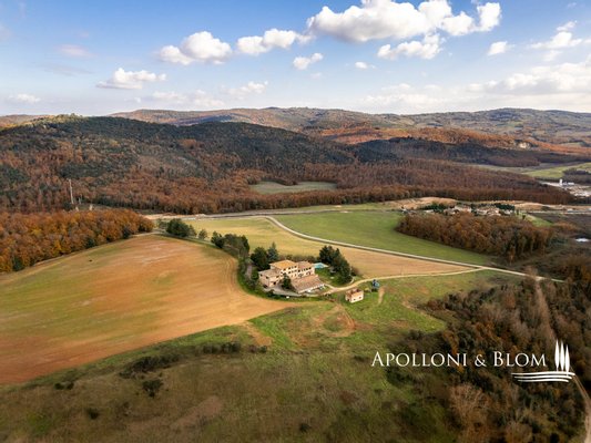 Restauriertes Bauernhaus mit 10 Wohnungen und beheiztem Schwimmbad, umzubauenden Nebengebäuden und 20 Hektar Land in Sovicille, Siena, zu verkaufen. Ehemaliger Bauernhofkomplex aus dem 19. Jahrhundert in den bezaubernden sienesischen Hügeln, nur 15 km südlich von Siena, im Naturpark Val di Merse gelegen. Seine strategische Lage, in der Nähe von Wanderwegen, historischen Stätten und der Staatsstraße, die Siena mit der Maremma und dem Meer verbindet, macht es zu einem idealen Ort für einen privaten Wohnsitz und Agrotourismus. Das Hauptgebäude wurde gekonnt in zehn Wohnungen umgewandelt, wobei die charakteristischen Merkmale der toskanischen Architektur mit ihren eleganten Steinfassaden erhalten blieben. Auf drei Etagen mit einer Gesamtfläche von 1.080 Quadratmetern bewahrt jede Wohnung traditionelle Elemente wie hohe Decken mit freiliegenden Holzbalken, Steinkamine und eine rustikale Atmosphäre, die ein Gefühl der Gastfreundschaft und Gelassenheit hervorruft. Im Garten, der das Anwesen umgibt, befindet sich ein Swimmingpool mit beheiztem Wasser, während ein Nebengebäude, das früher als Stallungen genutzt wurde, etwa 340 Quadratmeter groß ist. Im Inneren befinden sich zwei Wohnräume, ein alter Holzofen, drei Lagerräume und ein ehemaliger Werkstattraum von über 170 Quadratmetern, die alle ein großes Potenzial haben, in zusätzliche Wohnbereiche für Gäste umgewandelt zu werden. Getrennt vom Hauptgebäude befindet sich auf dem Grundstück auch eine zu restaurierende Ruine, die früher als Tabakladen genutzt wurde. Sie bietet zahlreiche Möglichkeiten zur individuellen Gestaltung und ermöglicht die Einrichtung zusätzlicher Räume für Wellness, wie z. B. ein Spa, oder für Unterkunftsaktivitäten. Zwei private artesische Brunnen garantieren eine konstante Wasserversorgung für den Hausgebrauch, die Bewässerung und den Swimmingpool. Mit seinen 20 Hektar Land, die hauptsächlich mit Ackerbau und Wäldern bebaut sind, und der Möglichkeit, auf Anfrage weitere Flächen hinzuzufügen, ist dieses Anwesen eine ideale Wahl für einen Agrartourismus, der bereits von Reisenden aus aller Welt geschätzt wird und beträchtliche Möglichkeiten zur Erweiterung und Entwicklung für touristische und hochwertige Beherbergungsaktivitäten bietet.