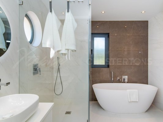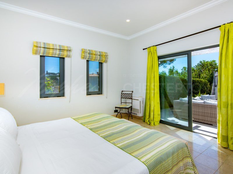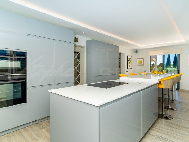 Der Preis wurde kürzlich von 5.750.000 Euro auf 5.500.000 Euro reduziert. Eingebettet in eine der begehrtesten Küstenlandschaften der Algarve bietet diese herausragende Villa mit fünf Schlafzimmern und fünf Bädern eine seltene Gelegenheit, ein wirklich einzigartiges Haus in Dunas Douradas zu erwerben, das zu den prestigeträchtigsten Adressen in Vale do Lobo, dem Goldenen Dreieck, gehört. Diese elegante, nach Süden ausgerichtete Residenz wurde kürzlich zu einem tadellosen Standard renoviert und kombiniert raffiniertes Design mit einem mühelos entspannten Küstenambiente. Jedes Element wurde sorgfältig geplant, von der Fußbodenheizung bis hin zur raffinierten Schichtbeleuchtung und den hochwertigen Oberflächen, die in jedem Raum ein Gefühl von zeitgenössischer Eleganz schaffen. Der großzügige Wohnbereich auf zwei Ebenen ist um einen auffälligen Kamin herum angeordnet, während sich die elegante Designerküche mit einer großen Marmorinsel und hochwertigen Geräten gleichermaßen für informelles Familienleben und stilvolle Unterhaltung eignet. Für zusätzliche Praktikabilität sorgt ein diskreter Hauswirtschaftsraum, der ausreichend Platz für Wäsche und Stauraum bietet und so für eine aufgeräumte Wohnumgebung sorgt. Die fünf geräumigen Schlafzimmer der Villa, alle mit Einbauschränken, bieten gut geplanten Stauraum und klare, moderne Linien. Die beeindruckenden Suiten im ersten Stock öffnen sich auf private Terrassen mit Meerblick, ideal, um Portugals wunderschöne Sonnenaufgänge mit einem Morgenkaffee zu begrüßen oder die Sonnenuntergänge am Ende des Tages zu genießen. Die Badezimmer sind mit einem Spa-ähnlichen Ambiente gestaltet und verfügen über eine elegante freistehende Badewanne, rahmenlose Glasduschen und moderne Steinoberflächen, die Ruhe und Luxus vermitteln.