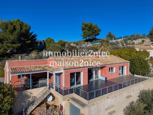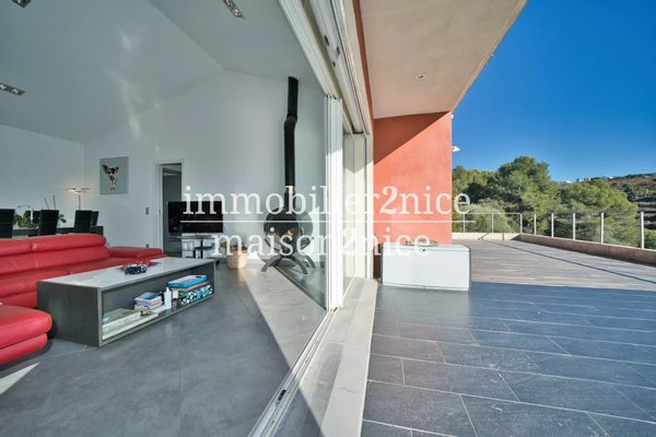 Auf den westlichen Hügeln von Nizza entdecken Sie diesen außergewöhnlichen Immobilienkomplex, der 2010 erbaut wurde. Sie besteht aus zwei unabhängigen einstöckigen Villen, die jeweils auf einem Grundstück von mehr als 6.000 m² in breiten, flachen Planken errichtet sind und mit Olivenbäumen und Weinbergen bepflanzt sind.