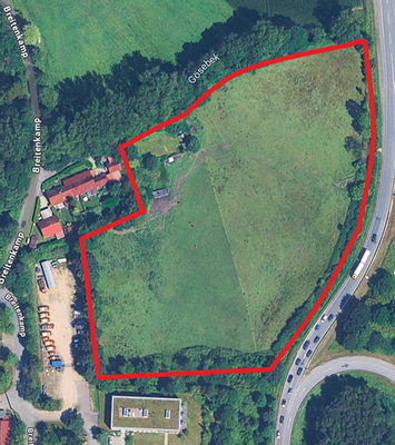 Die angebotene Grundstücksfläche liegt im Ostseebad Scharbeutz direkt hinter der Autobahn A1 und angrenzend an die Autobahn-Polizei. Das Grundstück wird erschlossen über die Straße Göschbeekweg, die direkt neben einem kleinen Zufluss liegt,