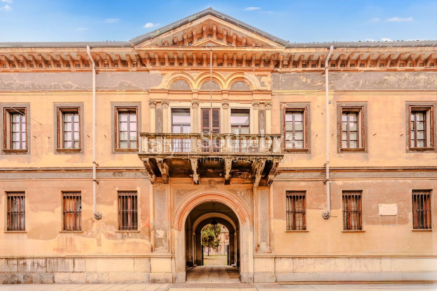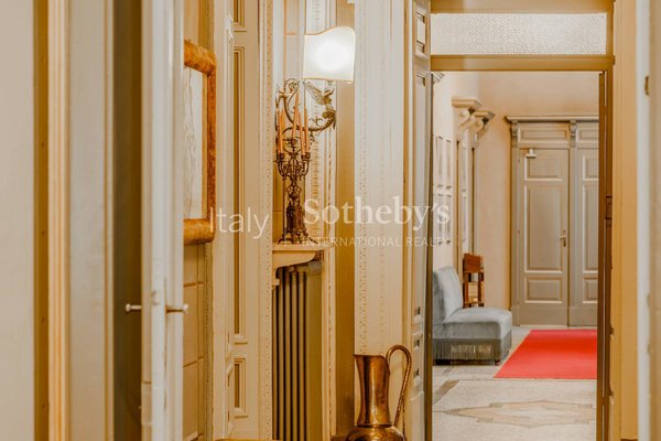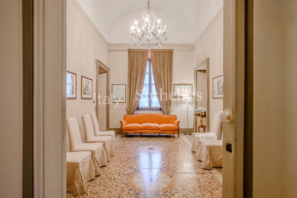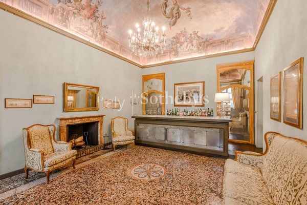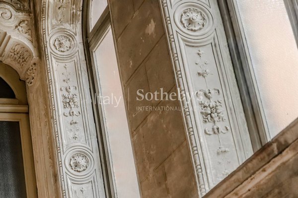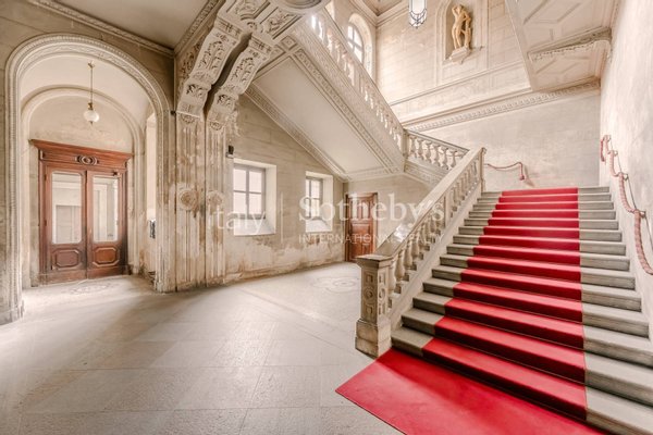 Die Immobilie ist um einen Innenhof herum angelegt und bewahrt zahlreiche wertvolle historische Elemente, darunter Fresken, Kamine, Mosaik- und Parkettböden, großzügige Treppenhäuser sowie Räume mit beeindruckender Deckenhöhe.