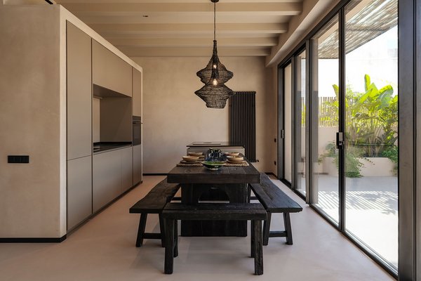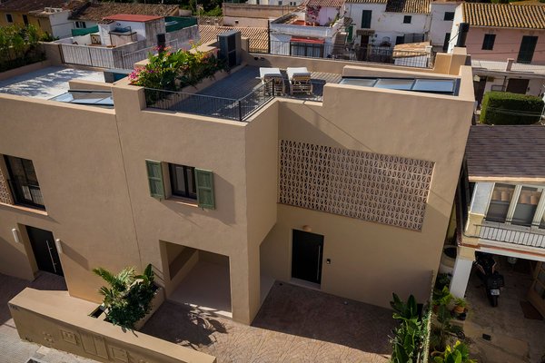 Dieses wunderschöne Stadthaus fügt sich durch die gelungene Kombination aus traditioneller Architektur und modernen Details harmonisch in die beschauliche Umgebung ein. Es befindet sich in einem Vorort von Palma, der sich in den vergangenen Jahren zu