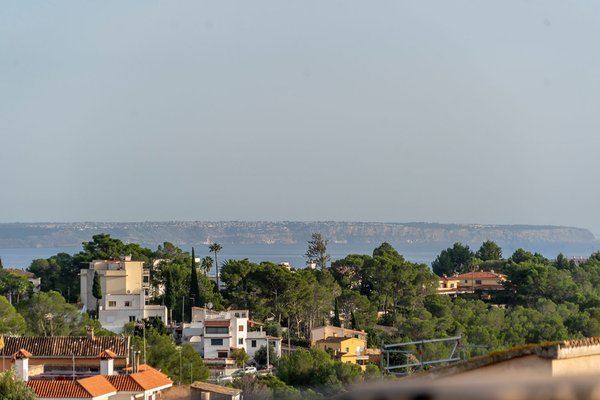 Ein besonderes Merkmal des Hauses ist die ca. 55 m² große Dachterrasse mit thermobehandeltem Holzboden. Sie bietet einen umlaufenden 360-Grad-Blick über die Bucht von Palma und die umliegende Berglandschaft.