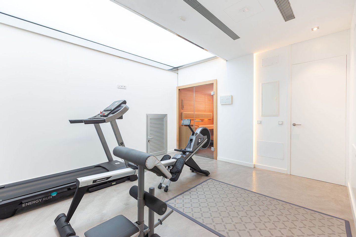 Für zusätzlichen Komfort sorgen ein Fitnessraum mit Sauna sowie ein ansprechend gestalteter Salzwasserpool-Bereich. Die technische Ausstattung erfüllt höchste Ansprüche und umfasst unter anderem eine 10-kW-Photovoltaikanlage, Mikrozementböden, Fußbodenheizung für warme und kühle Temperaturen über eine Wasserpumpe, Klimaanlage mit Gebläsekonvektoren, Smart-Home-System, Osmoseanlage, Alarmanlage sowie eine Ladestation für Elektrofahrzeuge.