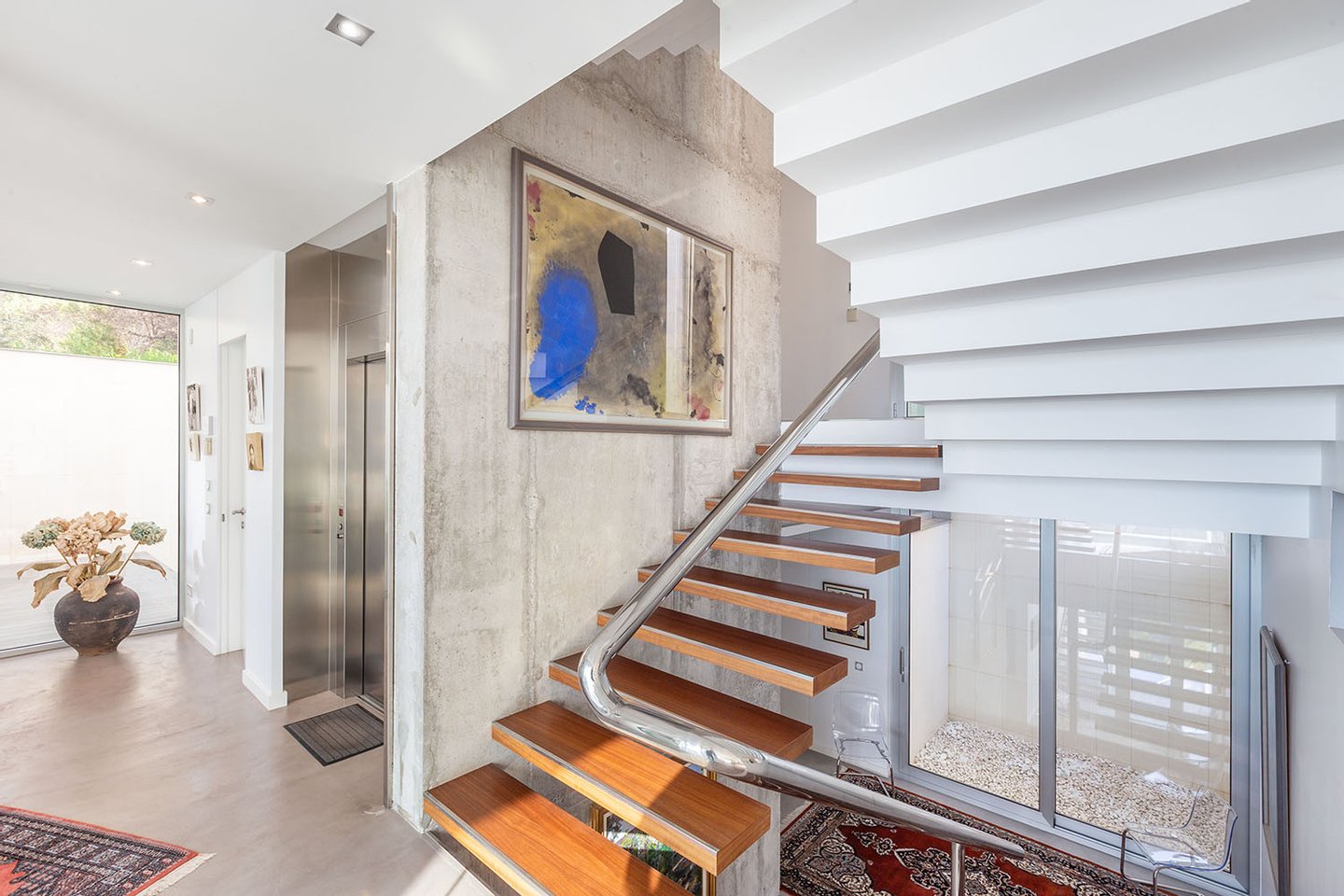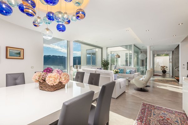 Die lichtdurchflutete Immobilie präsentiert sich in hervorragendem neuwertigem Zustand und erstreckt sich über mehrere Ebenen, die komfortabel über einen Aufzug miteinander verbunden sind. Großzügige Fensterfronten eröffnen einen weiten Panoramablick auf das Meer und die umliegende Landschaft und unterstreichen das offene, moderne Wohnkonzept.