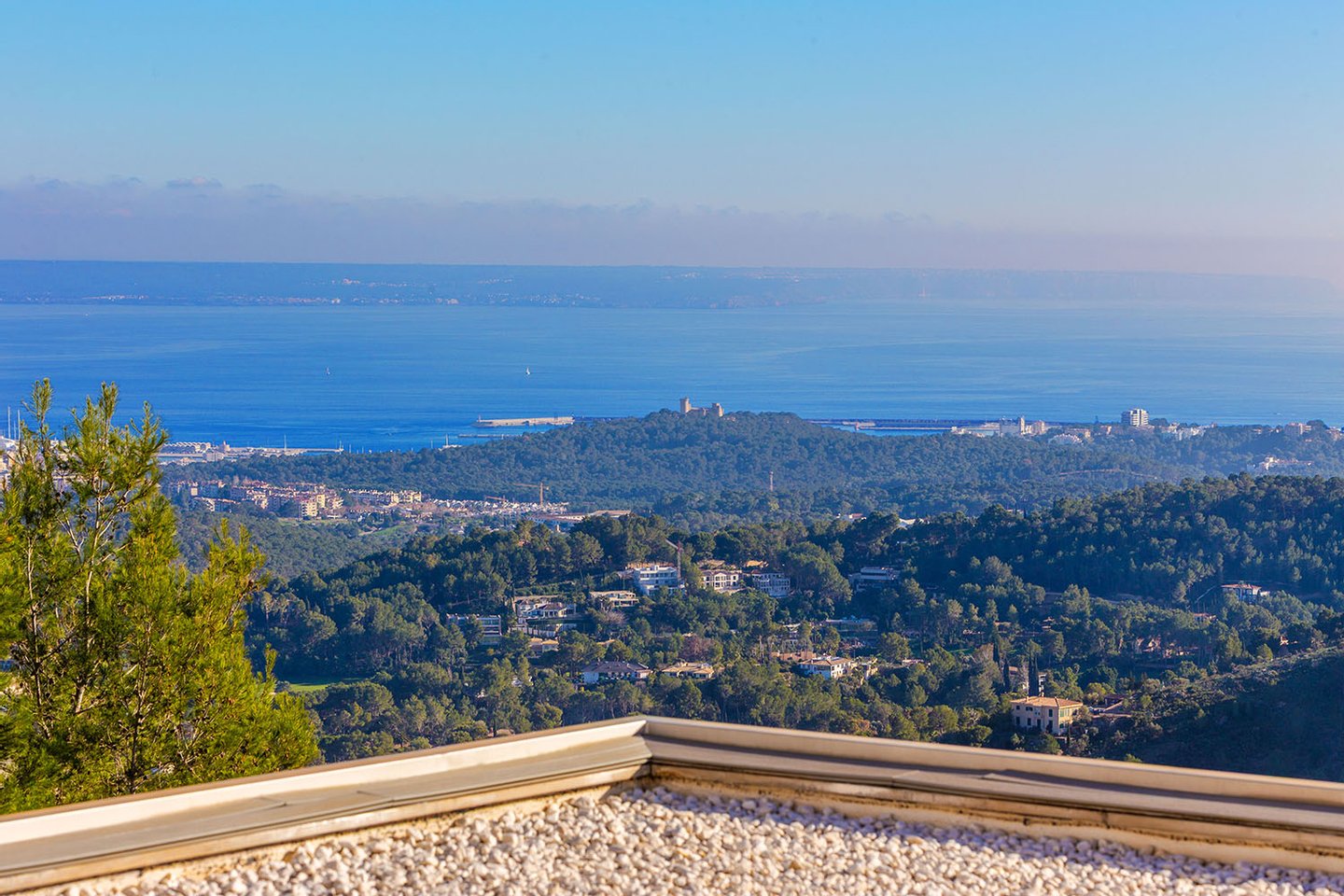 Diese moderne Villa mit eindrucksvollem Meerblick befindet sich in einer der begehrtesten Wohnlagen Mallorcas, im oberen, besonders ruhigen Bereich von Son Vida. Das 2.184 m² große Grundstück liegt in einer Sackgasse direkt an einer Grünzone und bietet dadurch ein hohes Maß an Privatsphäre sowie eine entspannte Wohnatmosphäre. Gleichzeitig ist das historische Zentrum von Palma in wenigen Fahrminuten erreichbar. Mehrere renommierte Golfplätze, internationale Schulen sowie Einkaufsmöglichkeiten und Dienstleistungen des täglichen Bedarfs befinden sich in unmittelbarer Umgebung.