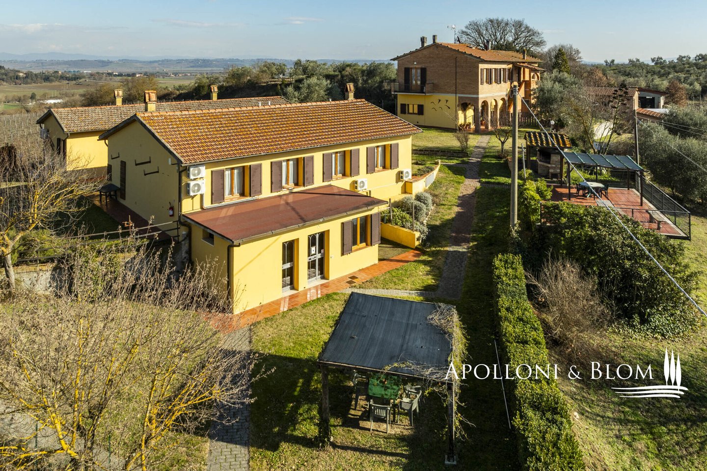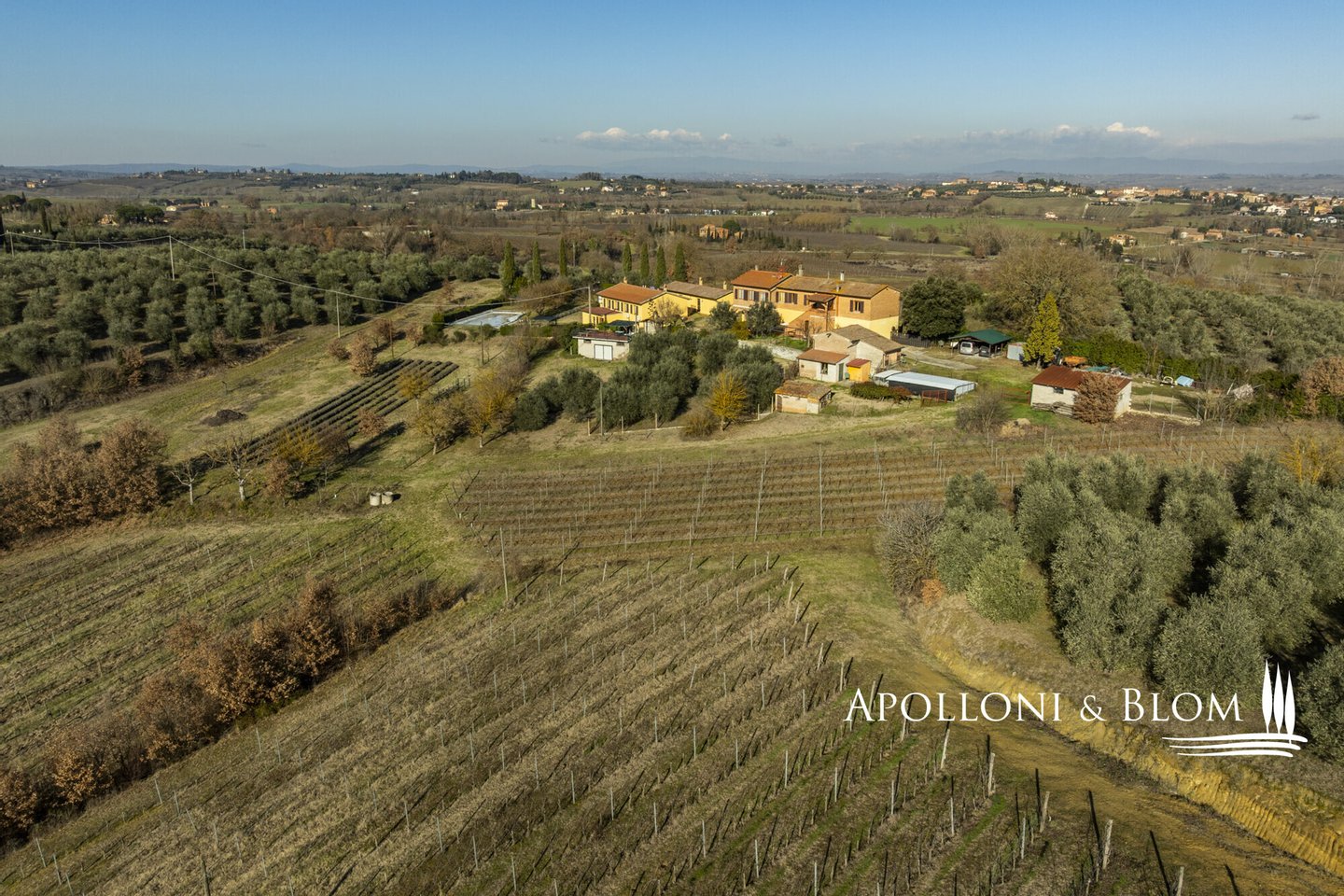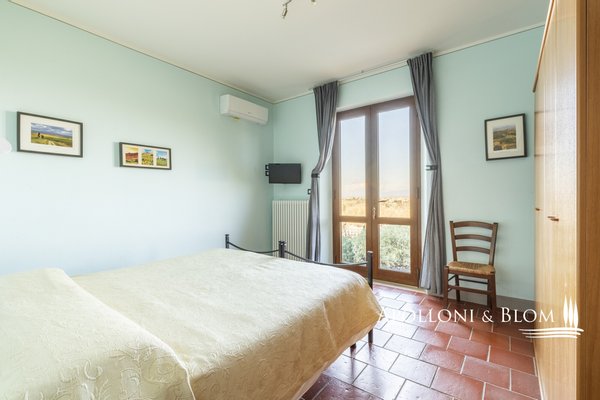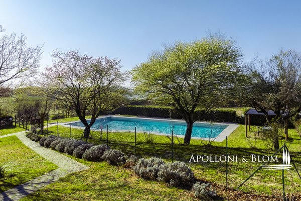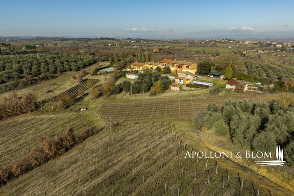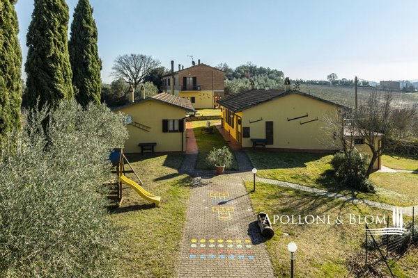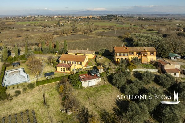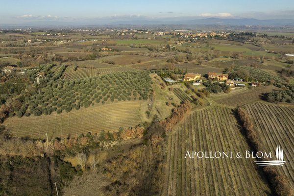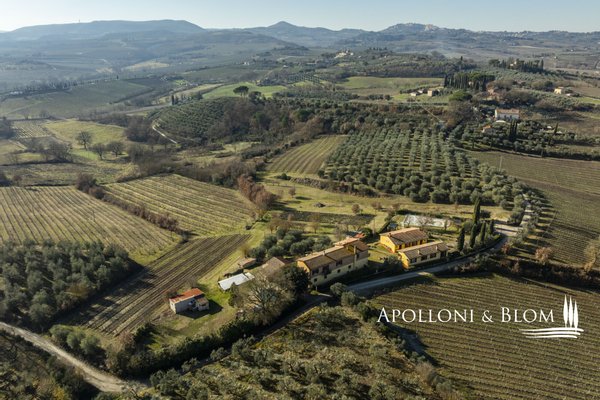 In prestigeträchtiger Panoramalage, renovierter Komplex mit Gästewohnungen, DOCG-Weinbergen und Weinkeller in Montepulciano zu verkaufen. Im Herzen des DOCG-Gebietes Vino Nobile di Montepulciano, inmitten der Hügel, die seit jeher dem Weinbau gewidmet sind, liegt dieser ländliche Komplex, ein authentischer Ausdruck der toskanischen Agrararchitektur. Die Siedlung befindet sich in einer dominanten Hanglage, mit einem ununterbrochenen Panoramablick auf das Valdichiana, das durch eine Landschaft von absolutem Wert gekennzeichnet ist, in der sich spezialisierte Weinberge, Olivenhaine und historische mittelalterliche Kerne abwechseln. Das Kompendium umfasst eine Fläche von 4,6 Hektar, die für den Anbau von Sangiovese mit der Bezeichnung DOCG Vino Nobile di Montepulciano und für die Herstellung von nativem Olivenöl extra bestimmt ist. Die Weinberge, die derzeit im Rahmen von Beitragsverträgen bewirtschaftet werden, haben einen durchschnittlichen Ertrag von 120 Doppelzentnern pro Hektar. Der Olivenhain umfasst ca. 380 Bäume in Produktion. Der Gebäudekomplex ist in 9 Gebäude mit einer Gesamtfläche von ca. 1.060 Quadratmetern unterteilt, eine Konfiguration, die eine flexible Nutzung sowohl für Wohnzwecke als auch für den Agrotourismus ermöglicht. Die Wohnbereiche umfassen 10 Schlafzimmer und 7 Bäder sowie Verkostungsräume, Nebenräume und technische Räume. Im Außenbereich befindet sich ein Panoramaschwimmbad mit Sonnenterrasse, flankiert von einer 50 Quadratmeter großen Terrasse mit Grillplatz. In den Nebengebäuden sind die funktionellen Strukturen für die landwirtschaftlichen und weinbaulichen Aktivitäten untergebracht, darunter ein Keller, Lagerräume und Garagen. Der Komplex befindet sich in einem guten Erhaltungs- und Instandhaltungszustand und ist sofort betriebsbereit. Er stellt eine bedeutende Gelegenheit für Akteure des Sektors oder Investoren dar, die an einem Weinbau- und Weinproduktionsobjekt in einer der bedeutendsten DOCG-Appellationen der italienischen Weinszene interessiert sind.