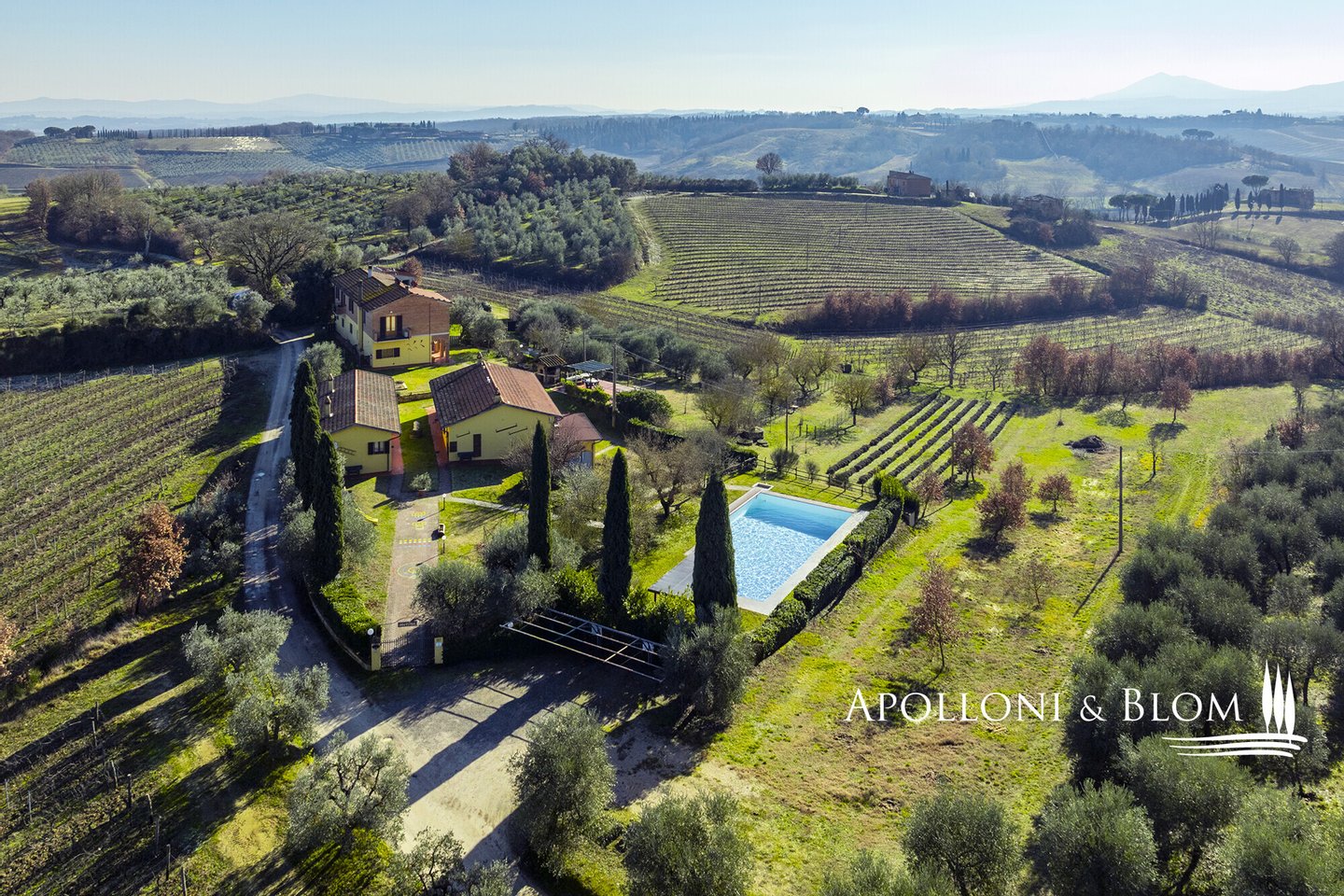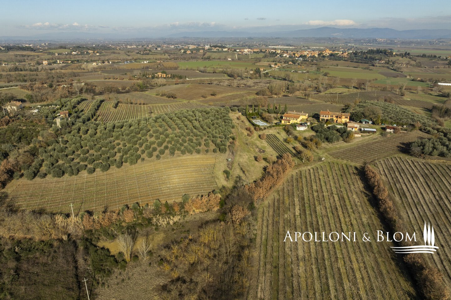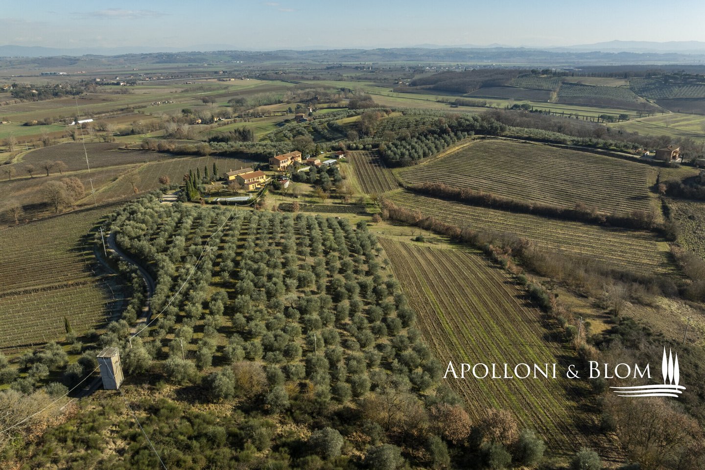 In prestigeträchtiger Panoramalage, renovierter Komplex mit Gästewohnungen, DOCG-Weinbergen und Weinkeller in Montepulciano zu verkaufen. Im Herzen des DOCG-Gebietes Vino Nobile di Montepulciano, inmitten der Hügel, die seit jeher dem Weinbau gewidmet sind, liegt dieser ländliche Komplex, ein authentischer Ausdruck der toskanischen Agrararchitektur. Die Siedlung befindet sich in einer dominanten Hanglage, mit einem ununterbrochenen Panoramablick auf das Valdichiana, das durch eine Landschaft von absolutem Wert gekennzeichnet ist, in der sich spezialisierte Weinberge, Olivenhaine und historische mittelalterliche Kerne abwechseln. Das Kompendium umfasst eine Fläche von 4,6 Hektar, die für den Anbau von Sangiovese mit der Bezeichnung DOCG Vino Nobile di Montepulciano und für die Herstellung von nativem Olivenöl extra bestimmt ist. Die Weinberge, die derzeit im Rahmen von Beitragsverträgen bewirtschaftet werden, haben einen durchschnittlichen Ertrag von 120 Doppelzentnern pro Hektar. Der Olivenhain umfasst ca. 380 Bäume in Produktion. Der Gebäudekomplex ist in 9 Gebäude mit einer Gesamtfläche von ca. 1.060 Quadratmetern unterteilt, eine Konfiguration, die eine flexible Nutzung sowohl für Wohnzwecke als auch für den Agrotourismus ermöglicht. Die Wohnbereiche umfassen 10 Schlafzimmer und 7 Bäder sowie Verkostungsräume, Nebenräume und technische Räume. Im Außenbereich befindet sich ein Panoramaschwimmbad mit Sonnenterrasse, flankiert von einer 50 Quadratmeter großen Terrasse mit Grillplatz. In den Nebengebäuden sind die funktionellen Strukturen für die landwirtschaftlichen und weinbaulichen Aktivitäten untergebracht, darunter ein Keller, Lagerräume und Garagen. Der Komplex befindet sich in einem guten Erhaltungs- und Instandhaltungszustand und ist sofort betriebsbereit. Er stellt eine bedeutende Gelegenheit für Akteure des Sektors oder Investoren dar, die an einem Weinbau- und Weinproduktionsobjekt in einer der bedeutendsten DOCG-Appellationen der italienischen Weinszene interessiert sind.