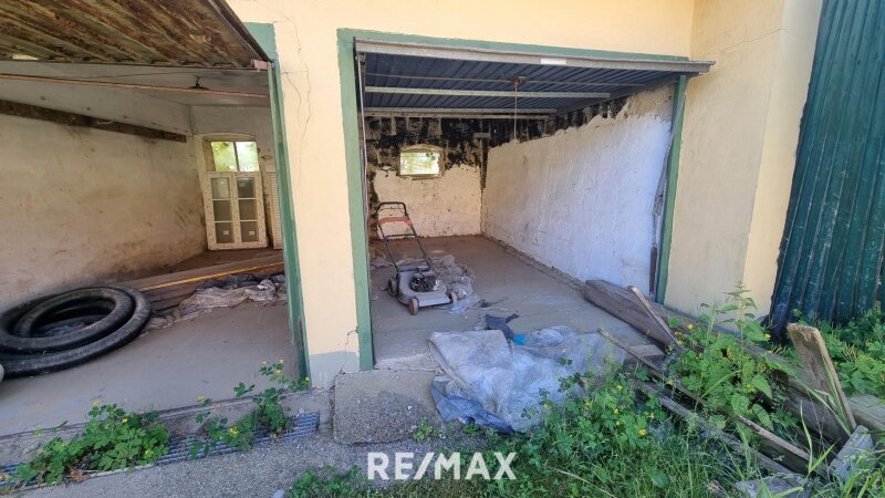 Nebengebäude 1: Mehrere Lagerräume und Garagen sowie ein Kellergewölbe – renovierungsbedürftig.