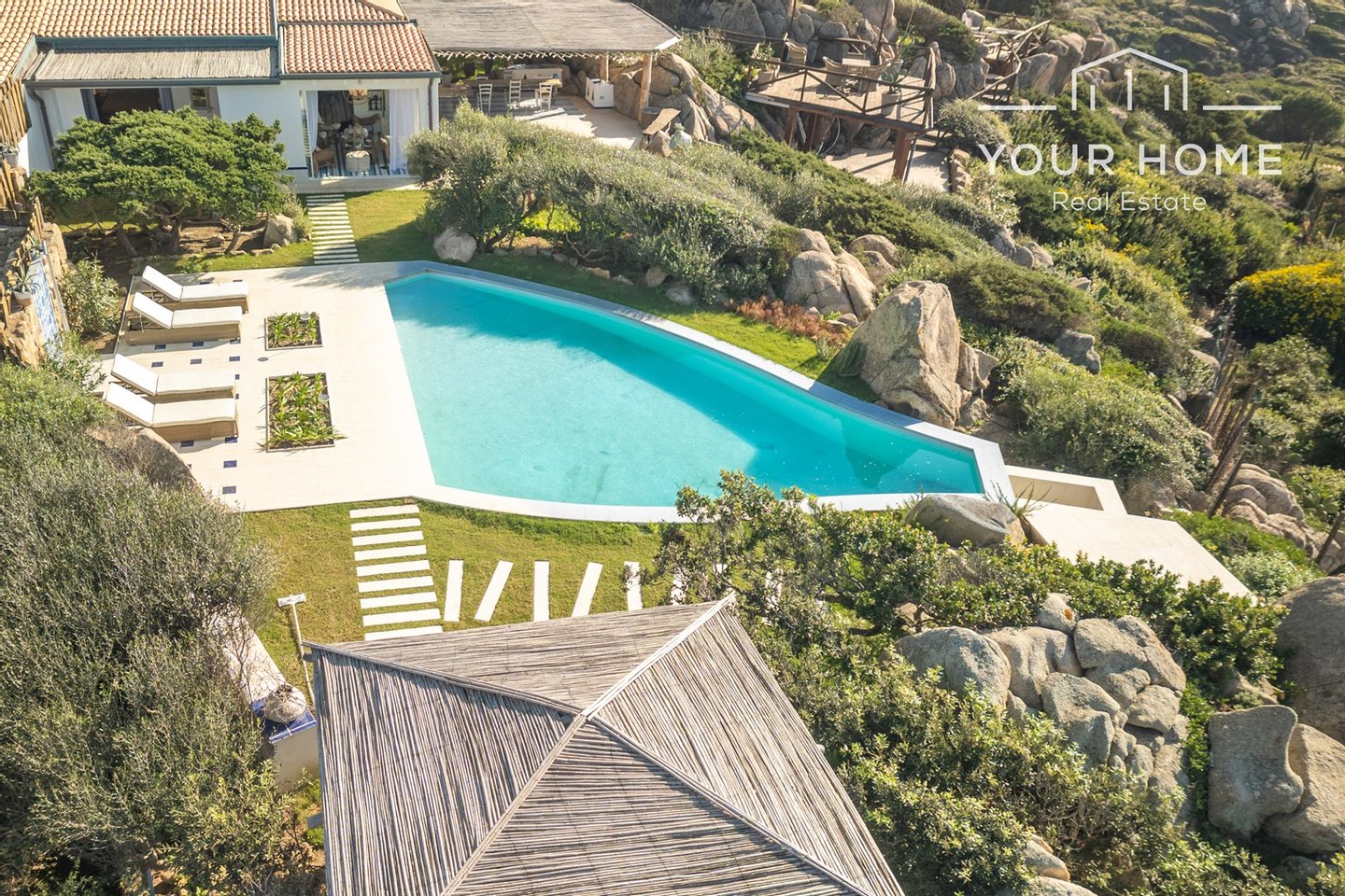 Die Villa befindet sich in Baia Santa Reparata in der Gemeinde Santa Teresa Gallura, nahe Capo Testa und der Landenge "der beiden Meere". Es befindet sich in einer privilegierten Lage nur 200 Meter vom Meer entfernt und bietet durch die erhöhte Lage unglaubliche Ausblicke auf das Meer, den Sonnenuntergang, das Mittelmeergestrüpp und die eindrucksvollen Granitvorsprünge der Gegend.