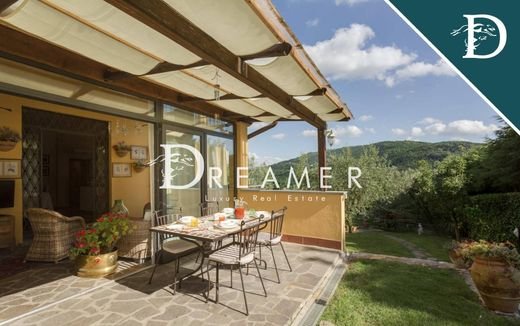 Splendid villa with swimming pool for sale in the hills of Bagno a Ripoli, just 20 minutes from the center of Florence. Currently divided into three easily reunitable apartments, the property offers a total living area of approximately 450 sqm, with seven bedrooms, seven bathrooms, and a convenient independent guesthouse.