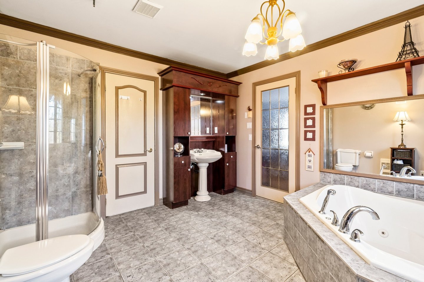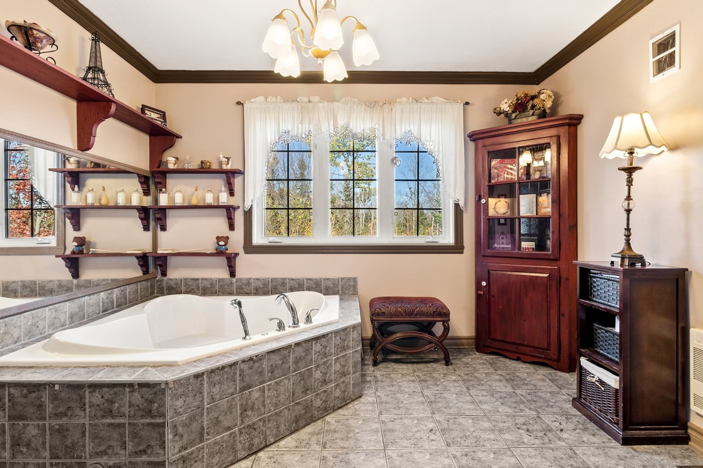 Die Hauptresidenz, inspiriert vom viktorianischen Design, bezaubert mit ihrer zeitlosen Eleganz. Im Inneren koexistieren Speisesaal, Musikecke und Bibliothek harmonisch und sind in natürliches Licht getaucht. Ein großer, offener Bereich vereint Küche, Wohnzimmer und Essbereich und bietet eine Atmosphäre, die sowohl einladend als auch friedlich ist. Der Sonnenraum, der mit Licht überflutet ist, bietet eine ideale Umgebung, um sich zu entspannen oder zu arbeiten und dabei atemberaubende Ausblicke auf das Anwesen zu genießen.