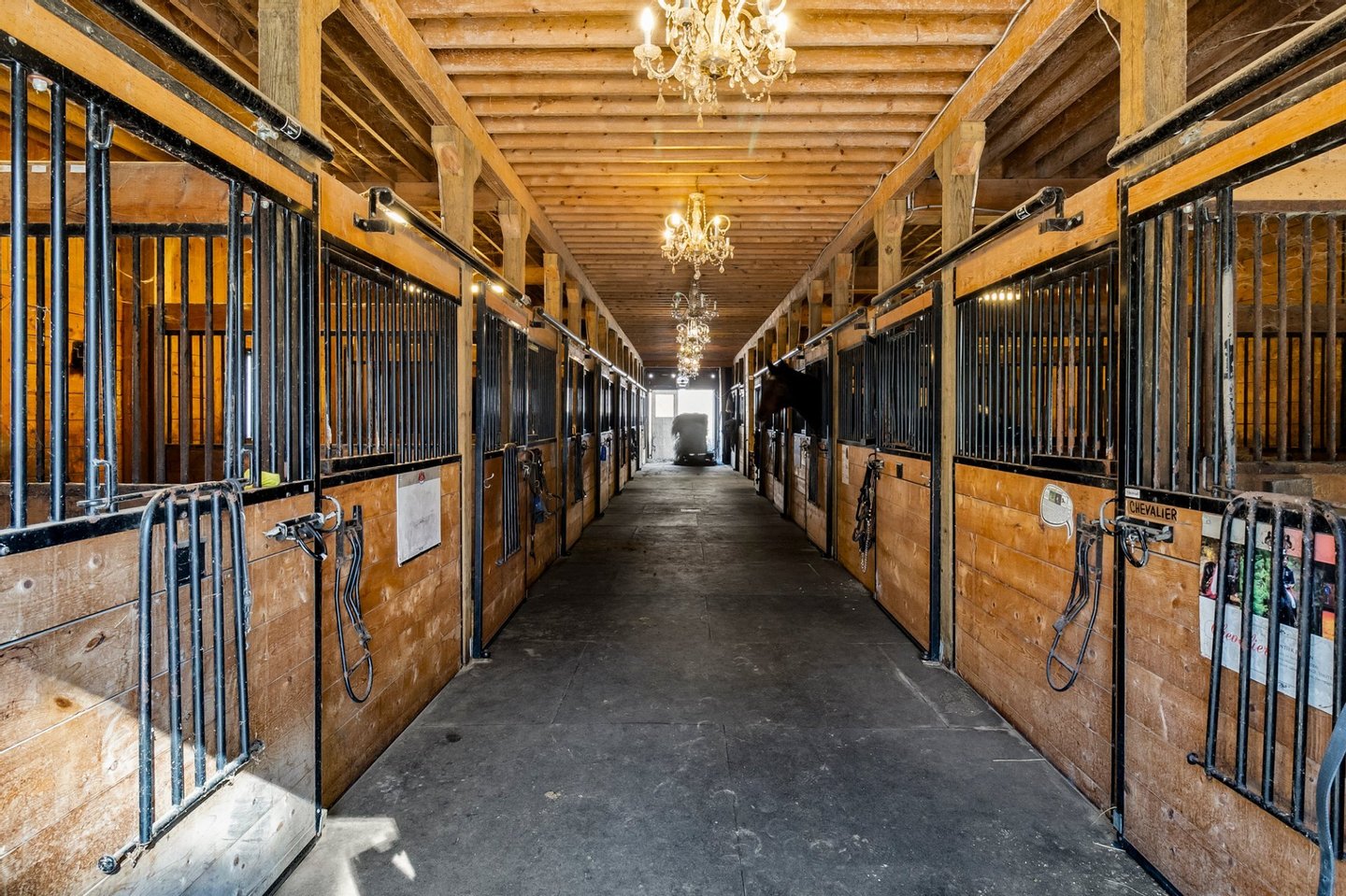 * Ein Teil des Grundstücks konnte auch für 1.190.000 $ verkauft werden (Farmette). Dieser Verkauf schließt die Innen- und Außenhallen sowie den damit verbundenen Stall aus, umfasst jedoch den oberen Stall (9 Stände) sowie die Nebengebäude. Es würde Land mit einer ungefähren Fläche von 10 Acres umfassen, abhängig von der Parzellierung.