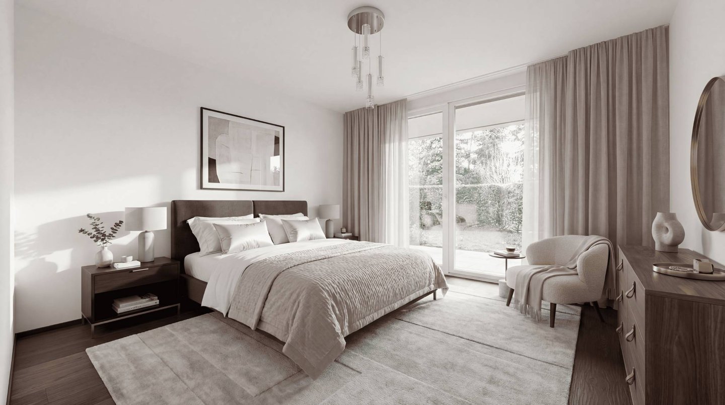 Modern and benefiting from high-end materials, this spacious 3.5-room apartment on the ground floor, facing south-east-west, offers a living area of approximately 100m². It is completed by a 50 m² terrace and a 200m² private garden.