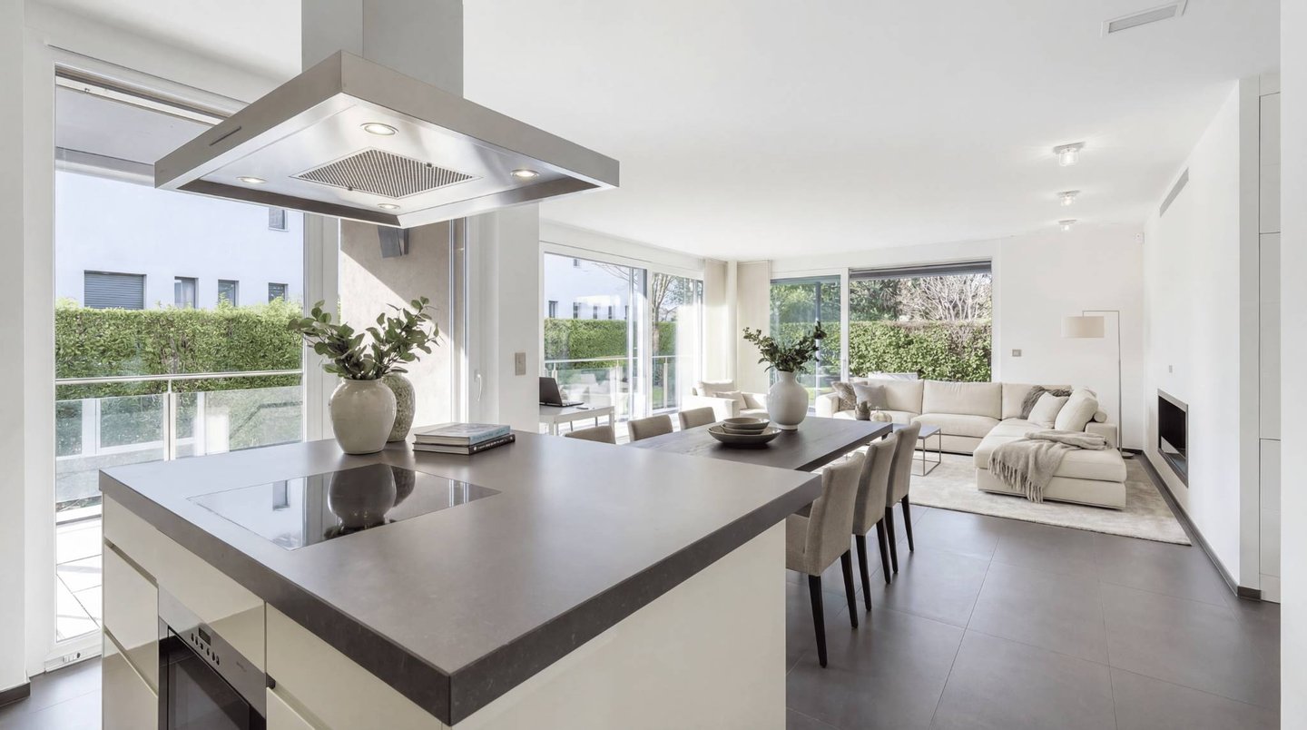 Modern and benefiting from high-end materials, this spacious 3.5-room apartment on the ground floor, facing south-east-west, offers a living area of approximately 100m². It is completed by a 50 m² terrace and a 200m² private garden.