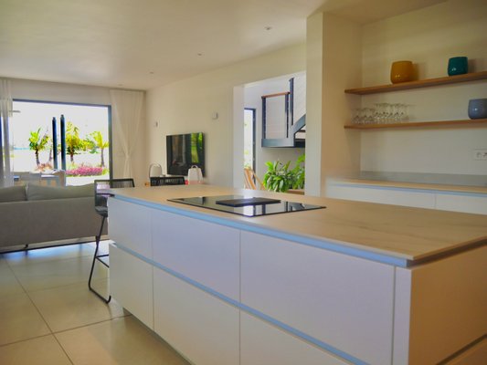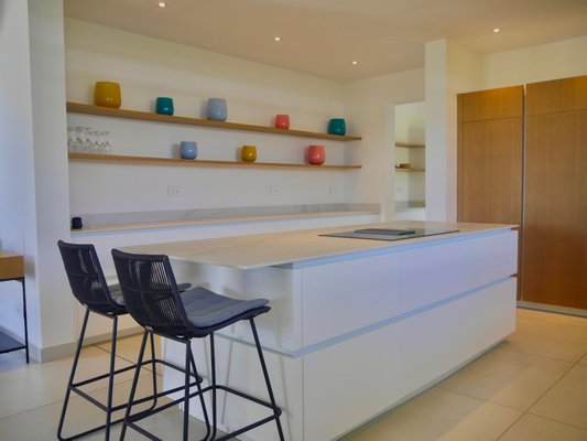 Das Erdgeschoss verfügt über eine zweite, voll ausgestattete Küche, sodass das Obergeschoss bei Bedarf unabhängig ist. Außerdem gibt es eine weitere Master-Suite mit begehbaren Kleiderschränken, ein zusätzliches Schlafzimmer mit eigenem Bad sowie einen eleganten Wohn- und Essbereich, der auf eine große Terrasse hinausgeht. Von dieser Terrasse aus genießen die Bewohner einen weiten, ungestörten Blick auf den Golfplatz und die umliegende Landschaft.