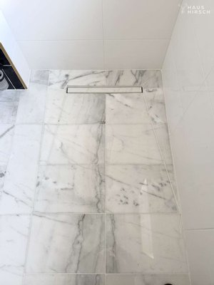 Fußbodenheizung, Echtholzparkett, Vollholztüren, Bianco Carrara Marmor im Duschbad.
