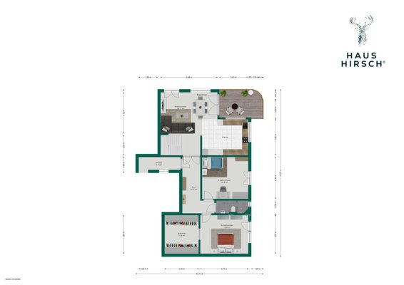 Ein weiteres Highlight stellen die insgesamt fünf Außenflächen dar. Zwei Balkone und drei Terrassen bieten vielfältige Möglichkeiten, Zeit im Freien zu genießen. Besonders hervorzuheben ist die rund 100 m² große Sonnenterrasse mit Sondernutzungsrecht, die als privater Rückzugsort ein ausgeprägtes Gefühl von Erholung und Freizeit vermittelt.