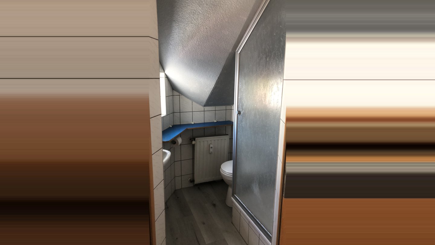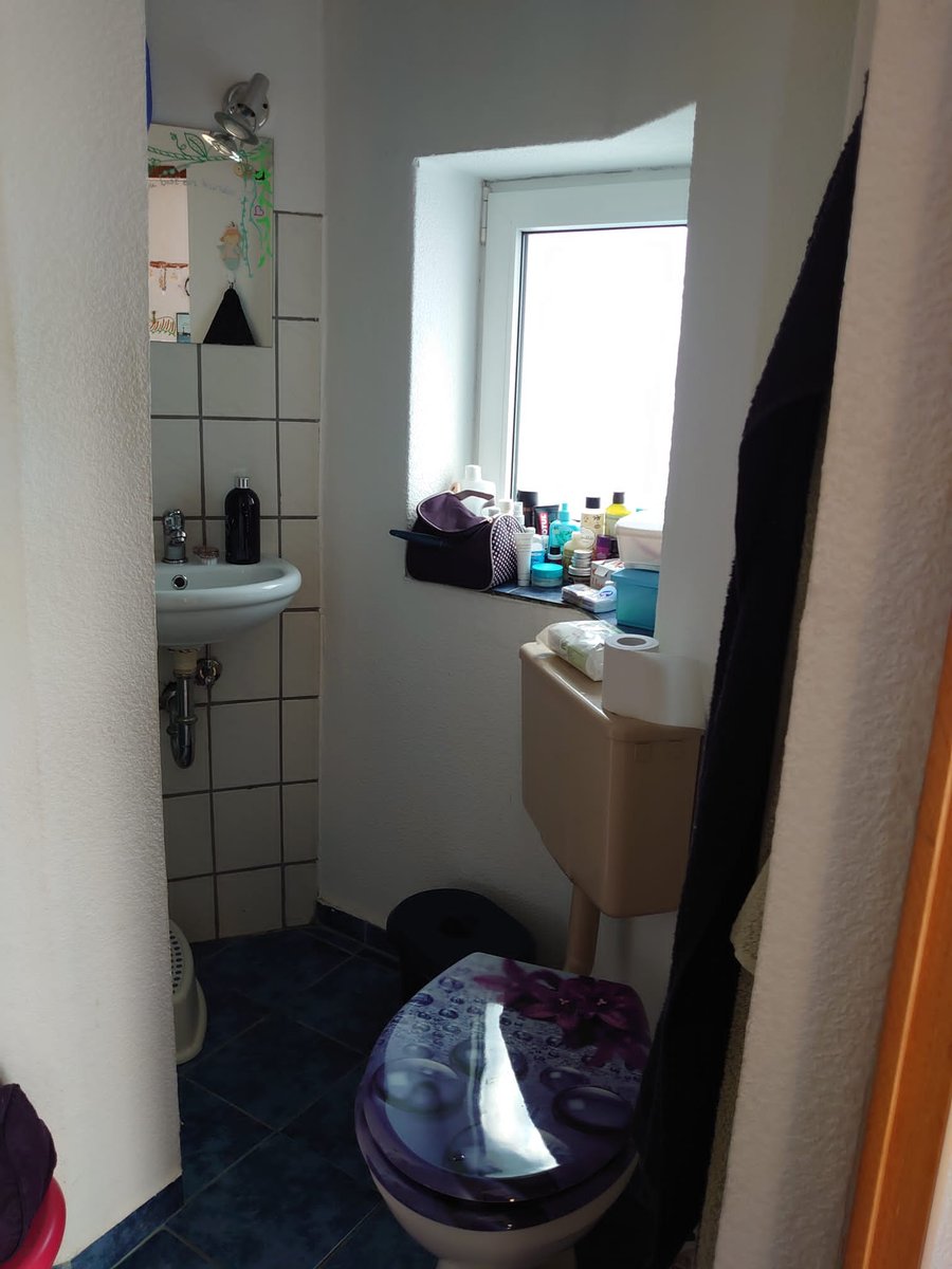 Im mittleren Geschoss befindet sich ein Bad mit Badewanne, WC und Waschbecken, im oberen Geschoss ein weiteres Bad mit Dusche, WC und Waschbecken. Die zusätzliche Badstruktur erhöht den Wohnkomfort erheblich und wirkt sich positiv auf die Vermietbarkeit aus, insbesondere bei Familien oder mehreren Bewohnern.