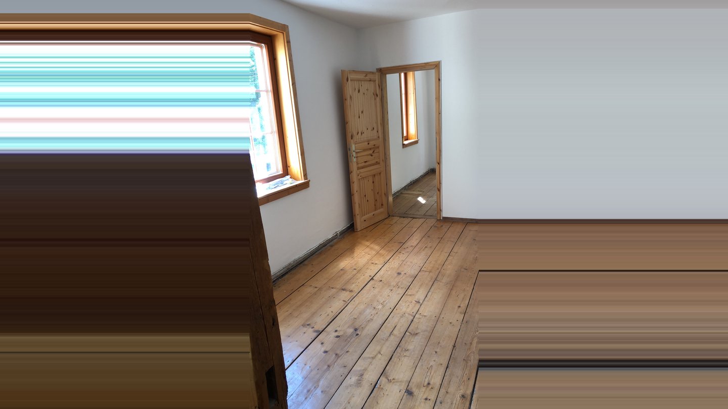 Die untere Wohneinheit bietet ein großzügiges Wohnzimmer mit integrierter Küchenecke, das als zentraler Wohn- und Aufenthaltsbereich dient, sowie zwei weitere Zimmer, die flexibel als Schlaf-, Arbeits- oder Kinderzimmer genutzt werden können. Ergänzt wird diese Einheit durch ein Bad mit Dusche, WC und Waschbecken. Die Raumstruktur ist klar, effizient und spricht insbesondere Paare oder kleine Familien an. Der direkte Zugang zur Terrasse erhöht die Wohnqualität zusätzlich.