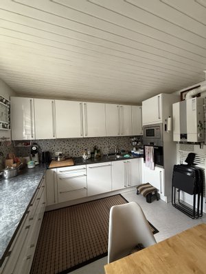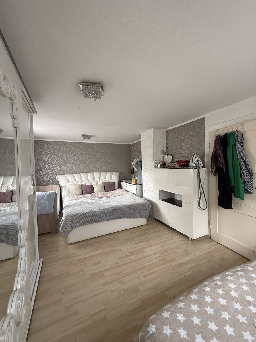 Das Haus verfügt über insgesamt 4 Zimmer, darunter 2 Schlafzimmer, ein ausgebauter Dachraum, der zuletzt ebenfalls als Schlafzimmer genutzt wurde, sowie ein helles Wohnzimmer. Ein Tageslichtbad mit Badewanne und ein separates Gäste-WC sorgen für zusätzlichen Wohnkomfort. Die weiße Einbauküche ist zeitlos und funktional gestaltet.