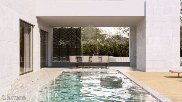 Überdachte Terrasse, Hof und ein etwa 450 m² großer Garten mit automatischer Bewässerung bieten viel Platz im Freien. Mittelpunkt ist der beheizte Pool mit 11 × 3 m. Wärmepumpe, pH-Automatik, Elektrolyse und Massagedüsen sorgen für Komfort. Terrasse, Balkon, Sommerküche, Grillbereich und Whirlpool erweitern das Angebot. Vom Erdgeschoss aus reicht der Blick bis zum Meer. Ein klares Plus.