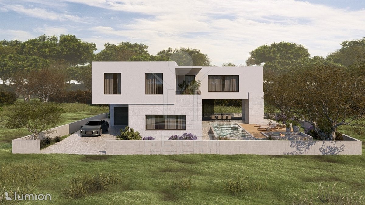 Smart wohnen in Vodice: Luxusvilla mit Pool, Wellness, Garage und freiem Meerblick